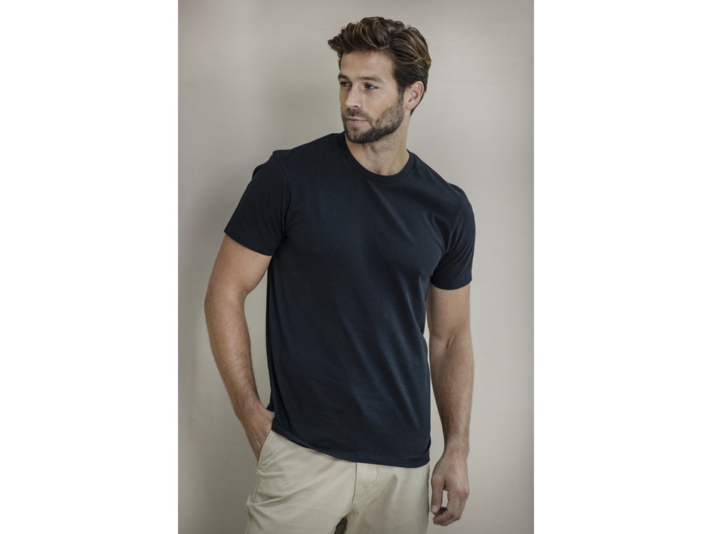 Воротник с обтачкой из основной ткани и узкая двойная игольная строчка обеспечивают долговечность, сохраняя при этом безупречный вид. Трикотажное полотно гладкого переплетения плотностью 160 г/м², изготовленное из переработанного хлопка и переработанного полиэстера, обеспечивает комфорт и воздухопроницаемость.