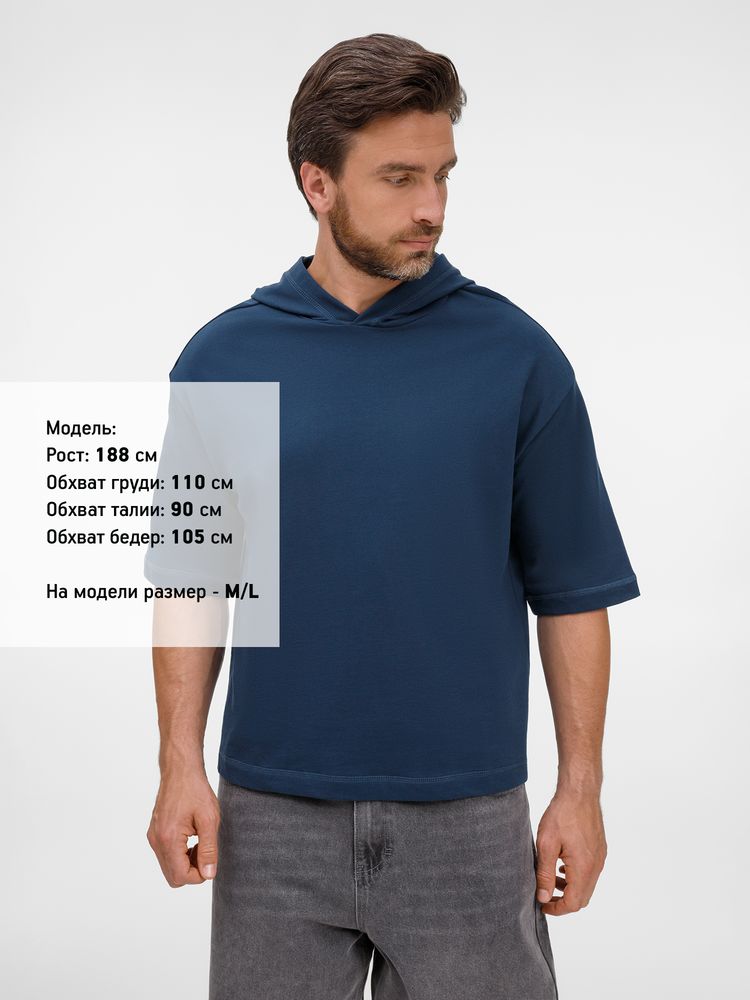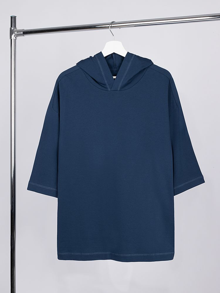 Футболка оверсайз унисекс с капюшоном Neofit, темно-синяя