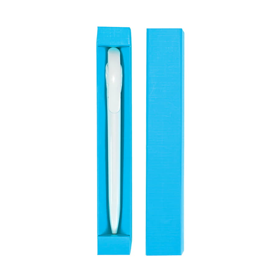 Футляр из дизайнерского картона с тиснением и ламинацией. Подходит для ручек и карандашей длиной до 145 мм и диаметром до 12 мм. Цвет, близкий к Pantone 298C. -