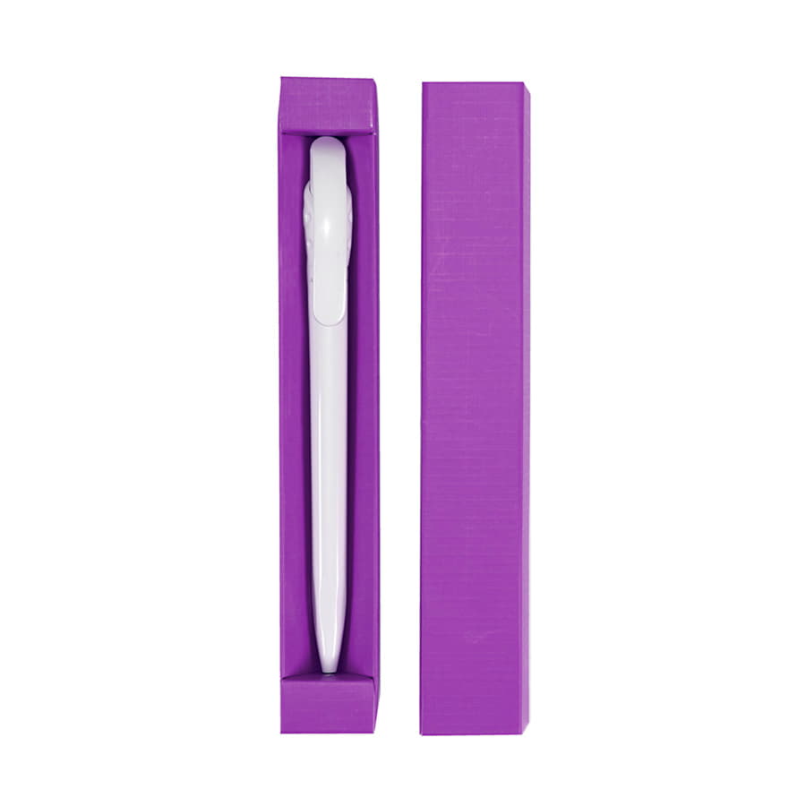 Футляр из дизайнерского картона с тиснением и ламинацией. Подходит для ручек и карандашей длиной до 145 мм и диаметром до 12 мм. Цвет, близкий к Pantone 2082C. -