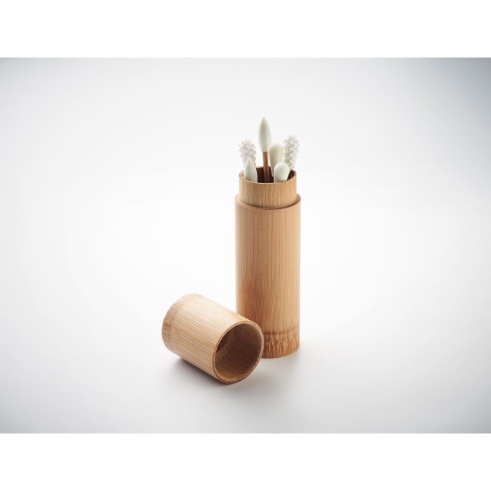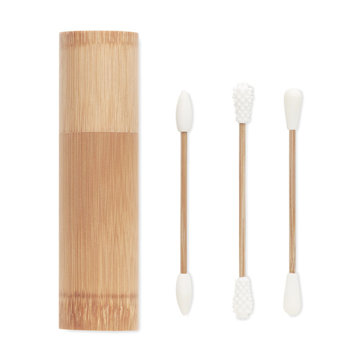 Набор из 6 многоразовых силиконовых двусторонних гигиенических палочек из бамбука. Упакован в бамбуковую коробку. -
