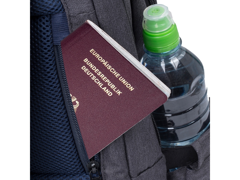 • На задней стенке имеется ремень крепления к багажной сумке и скрытый карман на молнии для паспорта, бумажника.