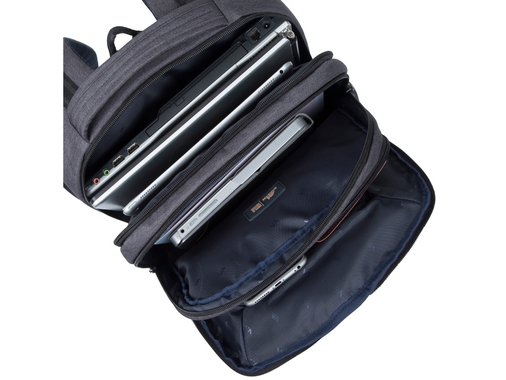 • Основное отделение для ноутбука с вертикальной загрузкой имеет дополнительный внутренний карман для планшета до 10.1.