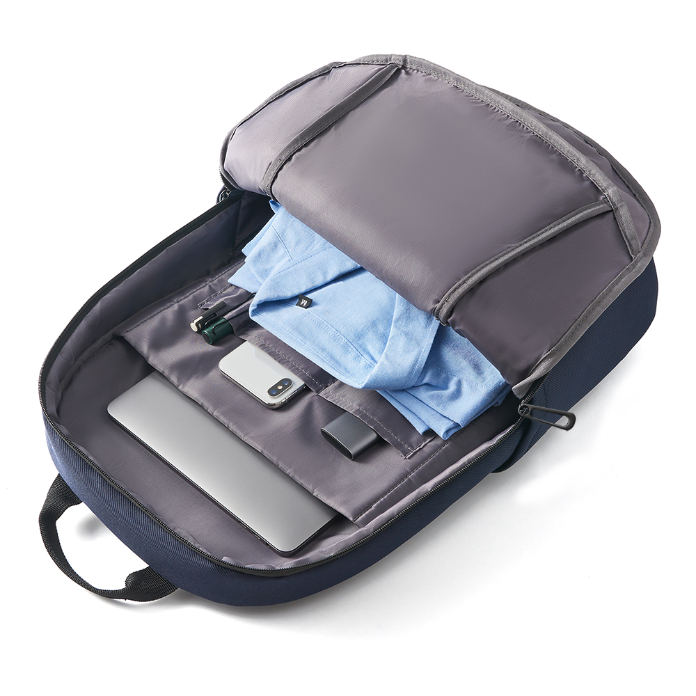 Стильный городской рюкзак GENER. Его особенности - сочетание элементов из искусственной кожи, высококачественного ультрапрочного полиэстера саржевого переплетения с обтекаемым футуристичным дизайном. Вертикальный антикражный карман на задней стенке - ваши документы в безопасности и всегда под рукой (при ношении рюкзака на правом плече). Дополнительные петли из тесьмы на плечевых ремнях для крепления различных аксессуаров и гаджетов. Верхняя часть из искусственной кожи надёжно защищает содержимое от попадания влаги внутрь, устойчива к широкому диапазону температур и служит дополнительным местом для кастомизации. Одно большое отделение на молнии и 2 наружных открытых кармана позволяют разместить всё необходимое. Внутри уплотненный карман для ноутбука 17 дюймов и карман-органайзер для мелких аксессуаров. 3D-сетка на задней стенке и подкладке плечевых ремней предотвращает скольжение и обеспечивает дополнительную вентиляцию и комфорт при контакте с кожей и одеждой. Двойное уплотнение задней стенки распределяет вес и снижает нагрузку на позвоночник. Уплотнённые плечевые ремни регулируются по длине. Специальная накладка для чемодана на задней стенке делает его незаменимым спутником для путешествий. Мешок-пыльник из нетканого материала даёт дополнительное место для кастомизации и надежно защищает ваш рюкзак во время хранения и транспортировки. Размер: 47*32*15 см Материал товара: Полиэстер с водонепроницаемой пропиткой Плотность: 1000D Цвет по PANTONE® (максимально приближен): 534С Рекомендуемая максимальная нагрузка: не более 10 кг. Вместимость: 17 л. Вес: 0.51 кг Возможно добавление пуллеров (арт. 4093) в количестве 2 шт в семи вариантах цвета и нанесение на них УФ печати Возможна кастомизация с помощью ремувки (арт. 4094, 4097) в восьми вариантах цвета и нанесение на неё термопечати- Виды нанесений: Термотрансфер DTF, Шелкотрансфер