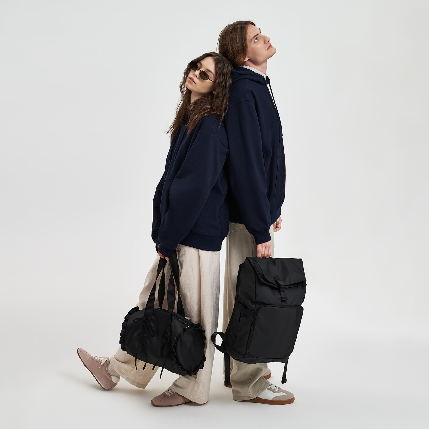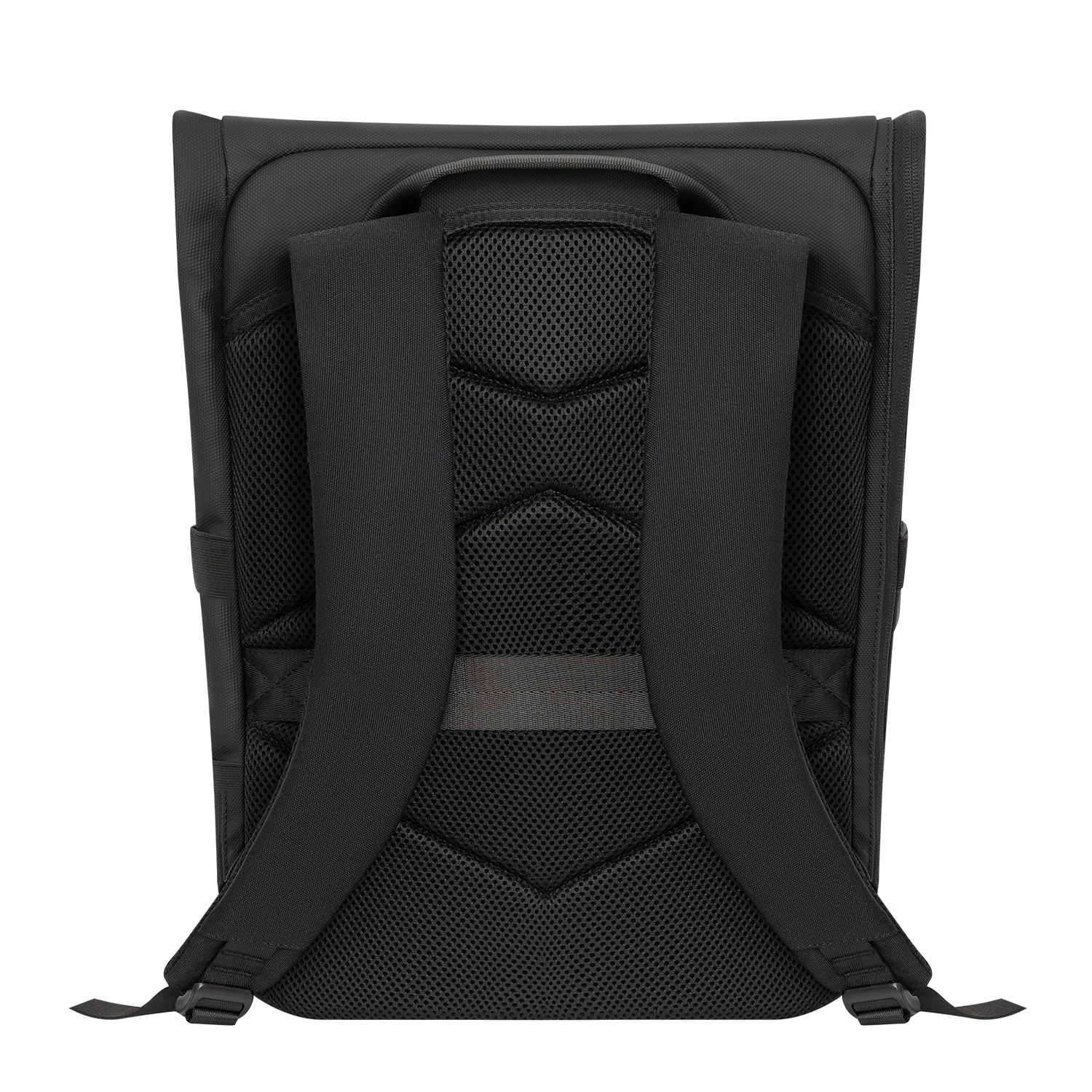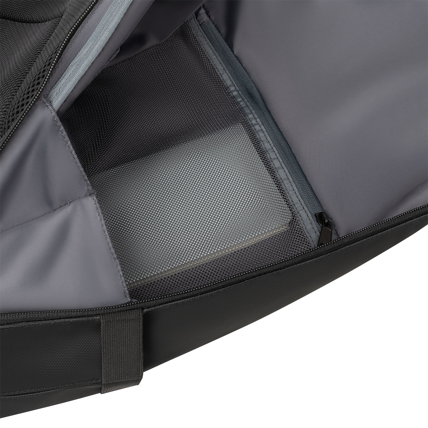 Прочный 1800D полиэстер с ПУ-покрытием отталкивает влагу. Внутри — уплотненный карман для ноутбука и небольшой сетчатый карман на молнии для мелочей. Вместительные передние карманы, один из которых на скрытой молнии, позволяют удобно хранить важные вещи.
