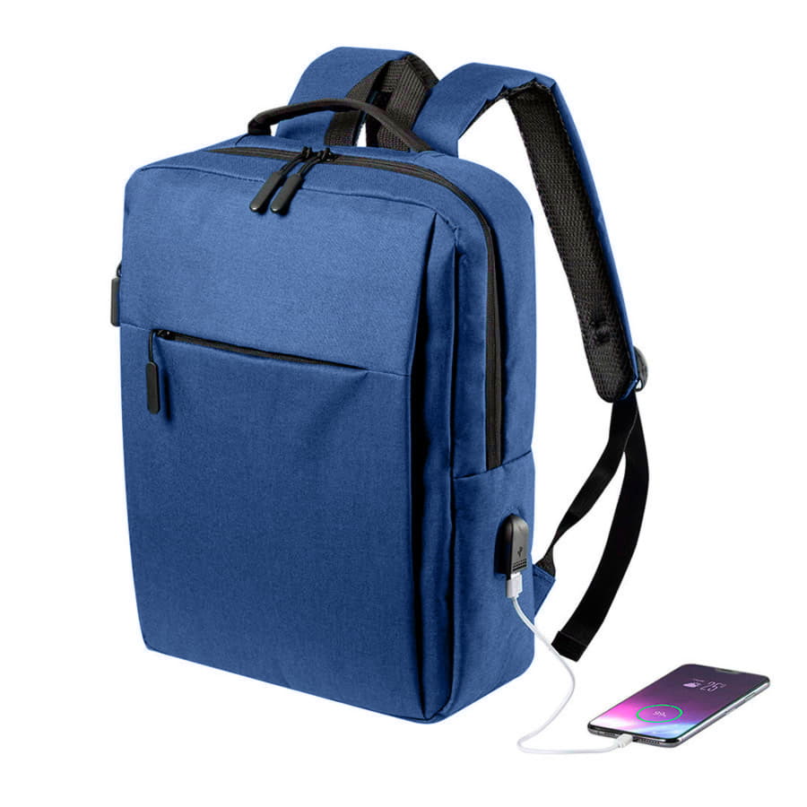 Повседневный рюкзак стиля casual выполнен из плотного 600 D полиэстера. · Объём: 16 литров · Вмещает ноутбук 15" Описание: · Прочный и водоотталкивающий материал · Основной отдел на молнии с двумя бегунками для удобства открытия · 2 удобных наружных кармана на передней части рюкзака · Внутри укрепленный отдел для ноутбука с защитной тесьмой на липучке · USB разъем для подзарядки вашего устройства (внутри рюкзака расположен кабель для соединения с power bank) · Специальная стропа на спинке для крепления рюкзака на выдвижную ручку чемодана · Эргономичные лямки и ручка рюкзака · Лямки прошиты дополнительными стропами в быстро изнашиваемых местах, которые можно отрегулировать по длине и зафиксировать пластиковыми крепежами · Упаковка: прозрачный пакет -