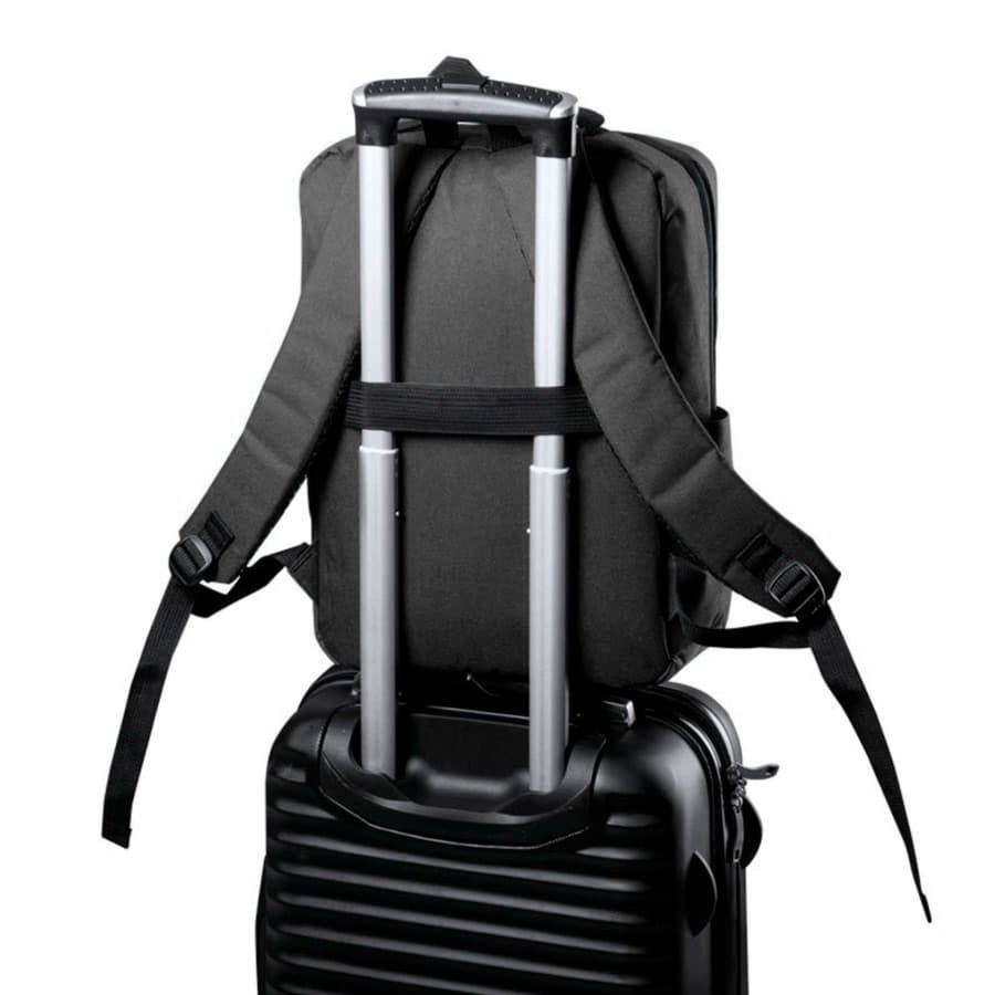 Повседневный рюкзак стиля casual выполнен из плотного 600 D полиэстера. · Объём: 16 литров · Вмещает ноутбук 15" Описание: · Прочный и водоотталкивающий материал · Основной отдел на молнии с двумя бегунками для удобства открытия · 2 удобных наружных кармана на передней части рюкзака · Внутри укрепленный отдел для ноутбука с защитной тесьмой на липучке · USB разъем для подзарядки вашего устройства (внутри рюкзака расположен кабель для соединения с power bank) · Специальная стропа на спинке для крепления рюкзака на выдвижную ручку чемодана · Эргономичные лямки и ручка рюкзака · Лямки прошиты дополнительными стропами в быстро изнашиваемых местах, которые можно отрегулировать по длине и зафиксировать пластиковыми крепежами · Упаковка: прозрачный пакет -