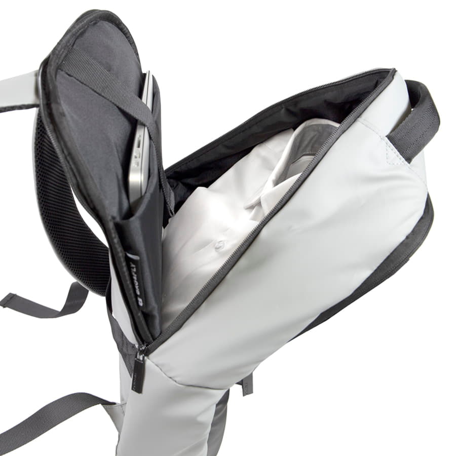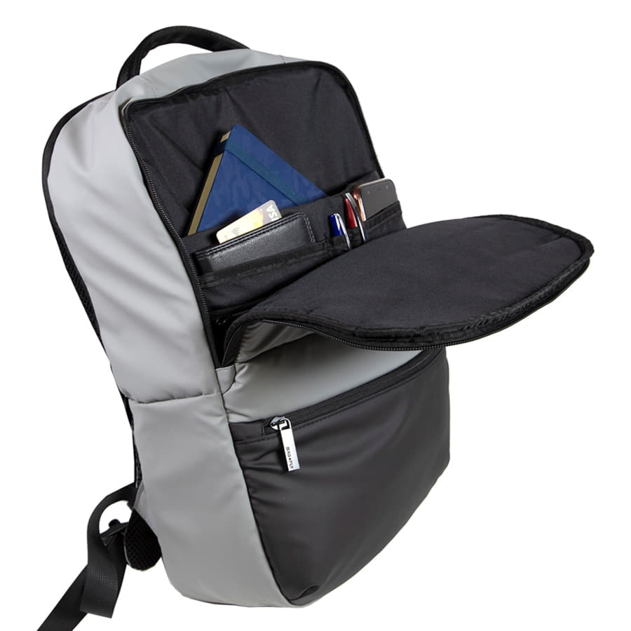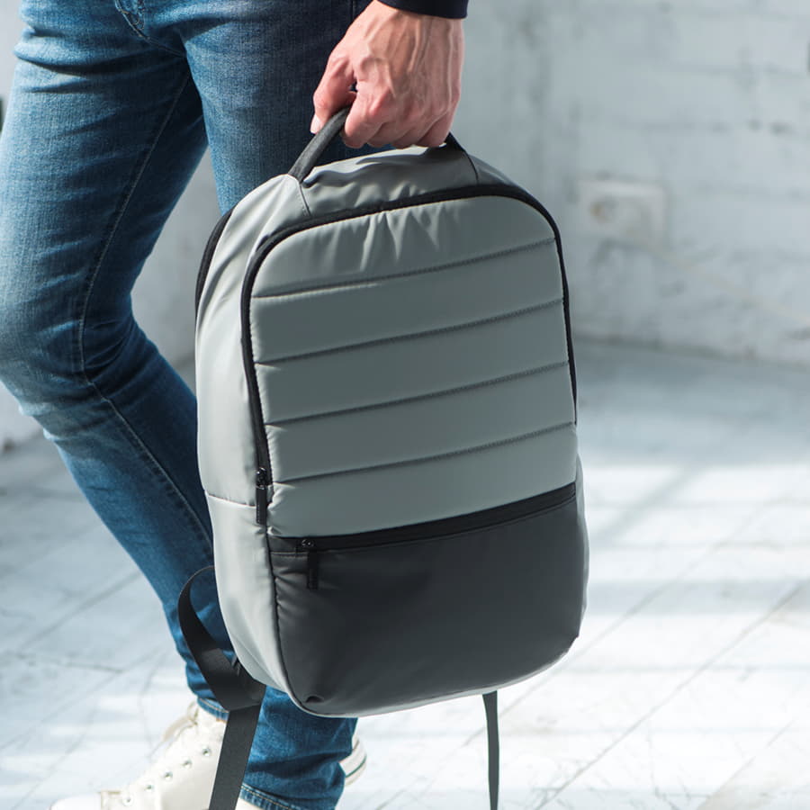 Основной цвет: близкий к Pantone 423 C, нижняя часть: цвет, близкий к Pantone 426 C • Основная ткань: 100% полиэстер c PU покрытием, подкладка: 100% полиэстер• Объём: 14 литров• Вмещает ноутбук 15,6" Описание:• Прочный и водоотталкивающий материал Anti-scratch• Два основных отдела с обратной молнией, защищающей от попадания влаги внутрь• Дополнительный внешний карман на молнии• Внутри укрепленный отдел для ноутбука с защитной тесьмой на липучке• Внутренний карман-сетка для термокружки или зонта• Дополнительные карманы для хранения • Эргономичные лямки • Укрепленная ручка рюкзака• Специальная стропа на спинке для крепления на выдвижной ручке чемодана• Лямки прошиты дополнительными стропами в быстро изнашиваемых местах, которые можно отрегулировать по длине и зафиксировать пластиковыми крепежами• Брендированные металлические пуллеры Bag Fly• Жаккардовый логотип Bag Fly внутри• Картонный ярлык Bag Fly• Упаковка: прозрачный пакет -