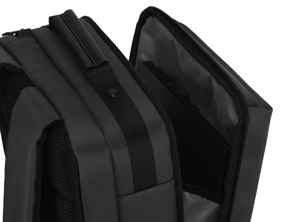 Рюкзак может легко превратится в деловую сумку для командировок, т.к. снабжен дополнительной ручкой для переноски в руке. В комплекте идет съемный металлический шильд под нанесение вашего логотипа.