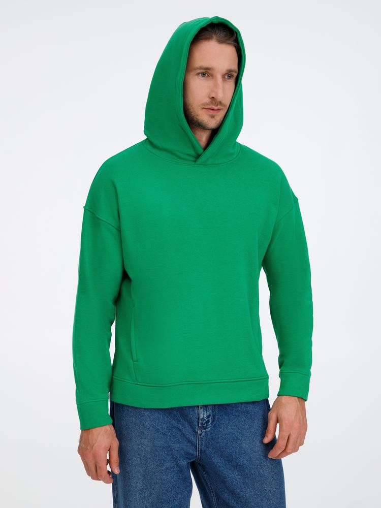 Худи унисекс оверсайз со спущенным плечом и внутренним карманом-кенгуру.- Капюшон на подкладке из основной ткани