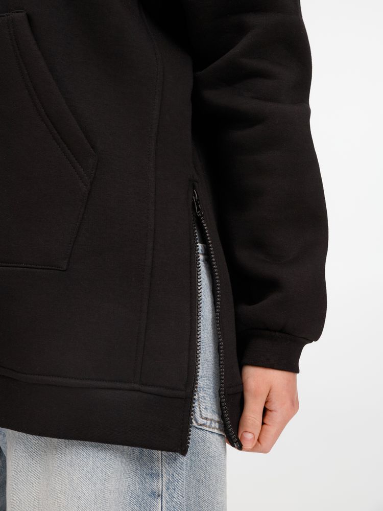 Худи унисекс удлиненного силуэта с молниями в боковых швах.- Рукав-реглан