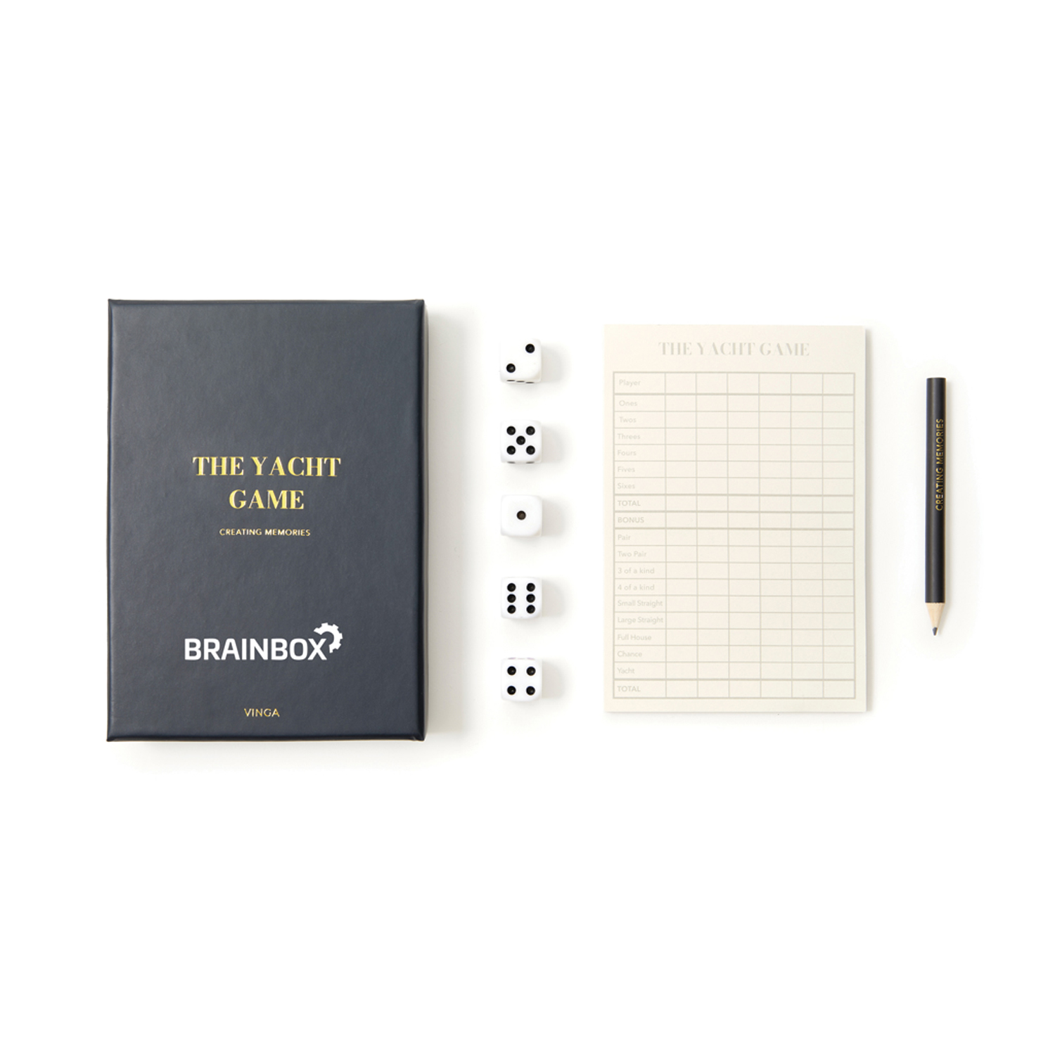 Yacht Game — это интересная настольная игра в кости, похожая на покер. Она предназначена для двух и более человек, оптимальное количество игроков — четыре. Для игры используют пять кубиков. За определенные комбинации кубиков даются очки, цель игры — набрать их наибольшую сумму. Все комбинации и цифры записываются в таблицу. В наборе от VINGA есть все необходимое для игры: кубики, блокнот и карандаш. Упакован он в подарочную коробку. Благодаря стильному и красивому виду набор Yacht станет не только интересным развлечением для вас и вашей семьи, но и элементом декора интерьера.