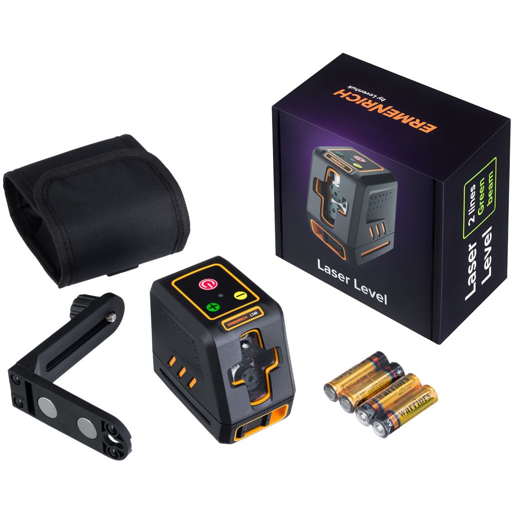 Линейный лазерный уровень Ermenrich LT40 выстраивает перекрестье из двух зеленых линий с помощью лазерных светодиодов. Прибор позволяет выполнять точное выравнивание поверхностей при выполнении строительных, отделочных и ландшафтных работ. Угол развертки лучей составляет 130 градусов в обеих плоскостях — по горизонтали и вертикали.