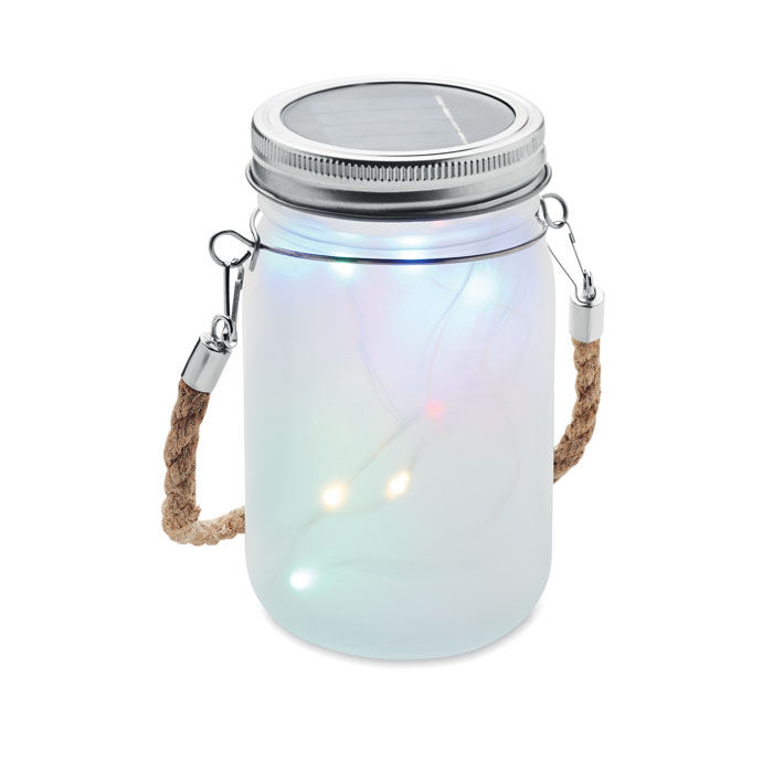 Уличный светильник на солнечных батареях из стекла с 20 светодиодными лампочками разных цветов. Подвеска сверху. Время работы около 7 часов. Аккумулятор 600 мАч и 1 NI-MH в комплекте. IP44. -
