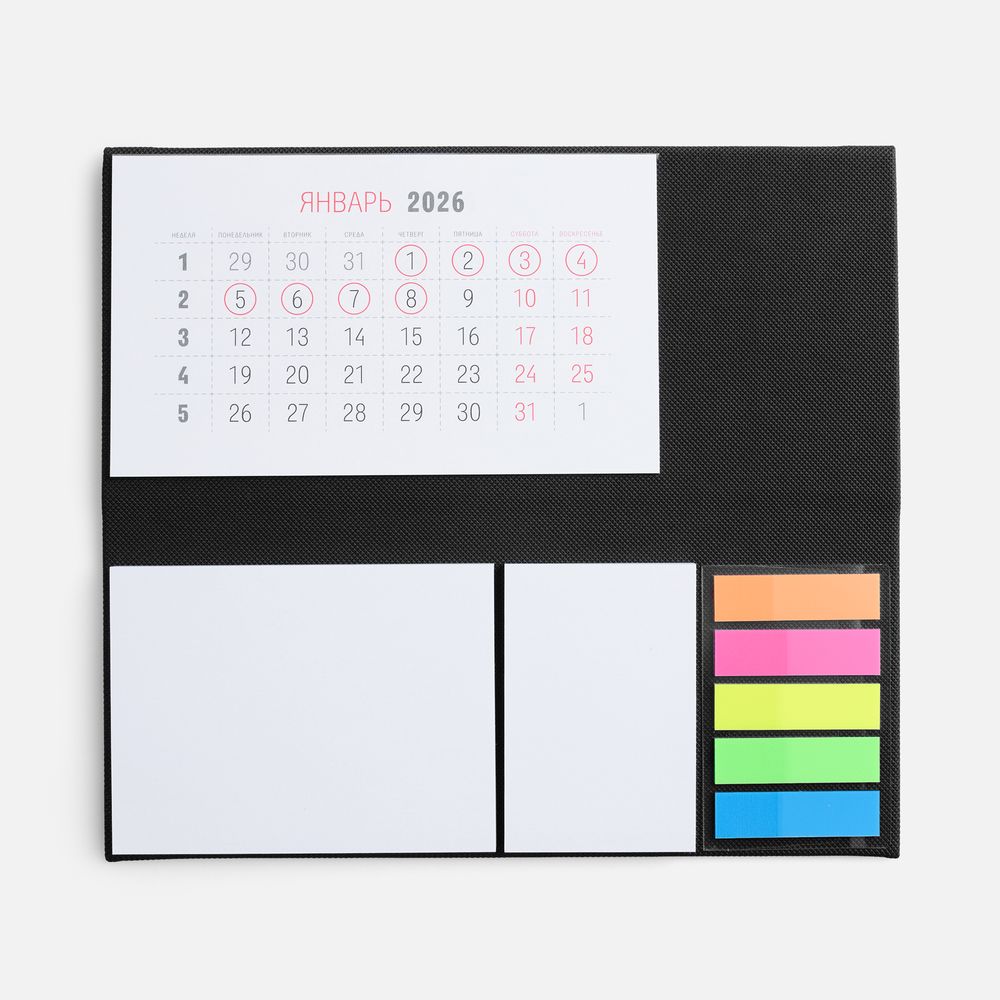 Настольный календарь-домик из материала Canyon, черный АА.- Календарь 14,5х8,6 см, 12 листов;