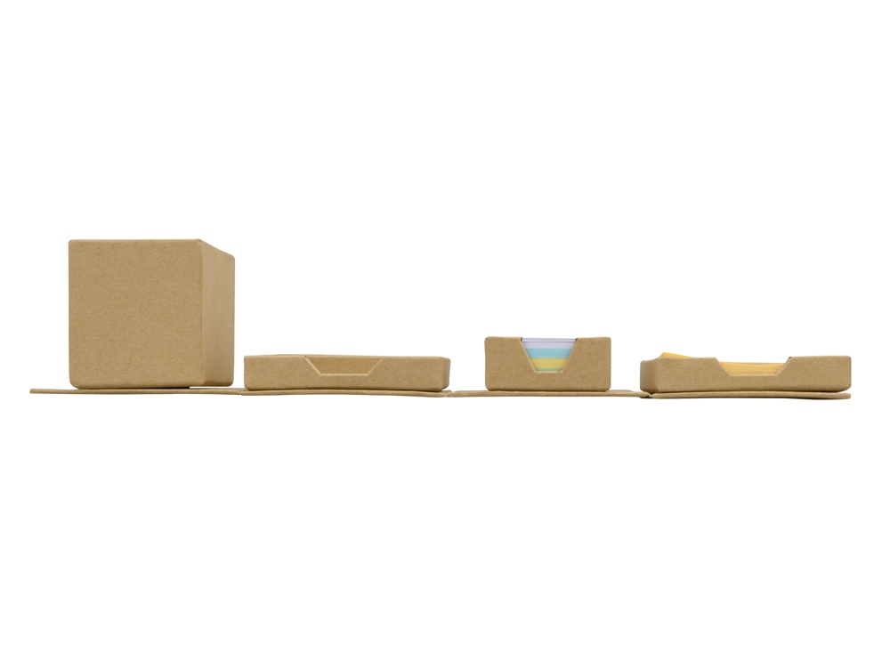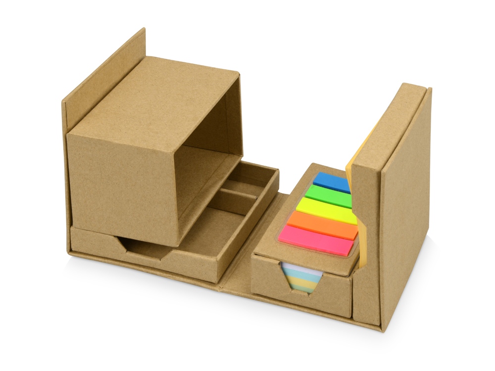 Оригинальная подставка для канцелярии Брик в сложенном виде представляет собой куб. А в разложенном – она превращается в удобный настольный прибор с отделениями для стикеров, бумаги для записей, скрепок и ручек. Настольный куб Брик сделан из бумаги и картона, и является отличным экосувениром. -