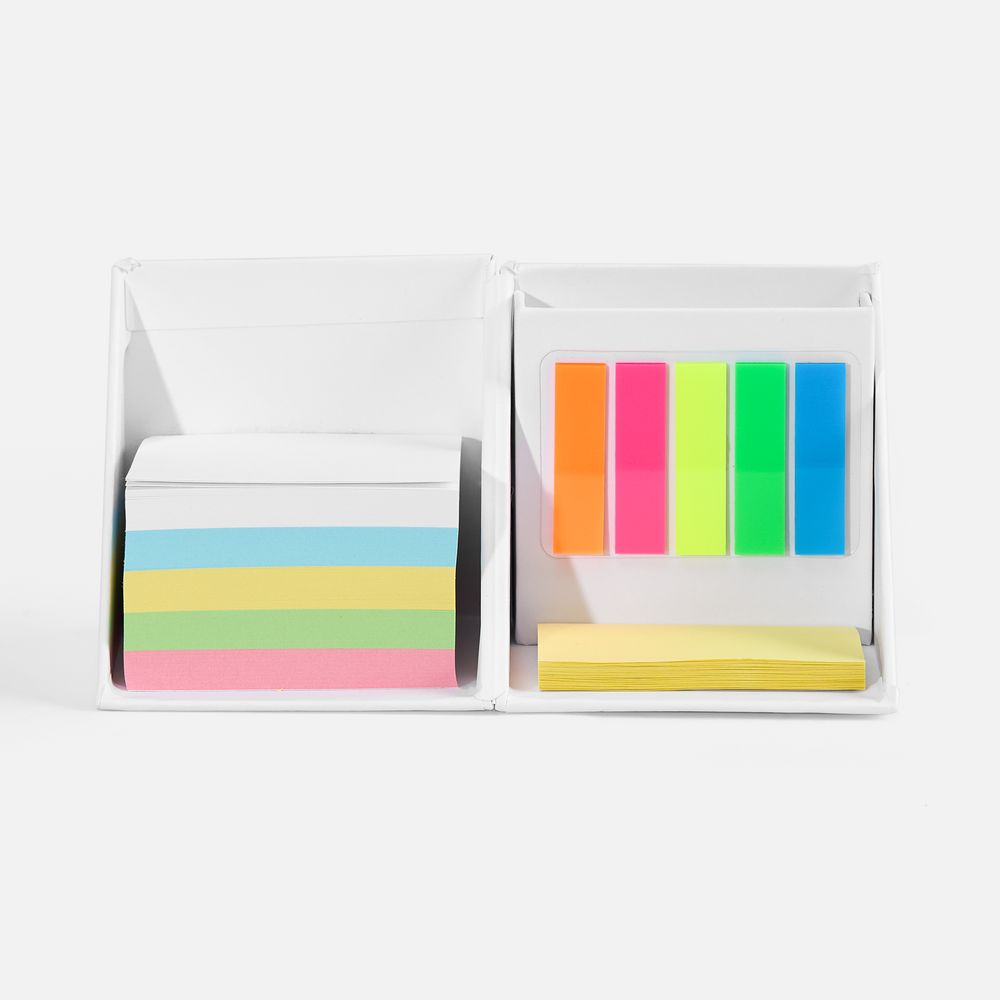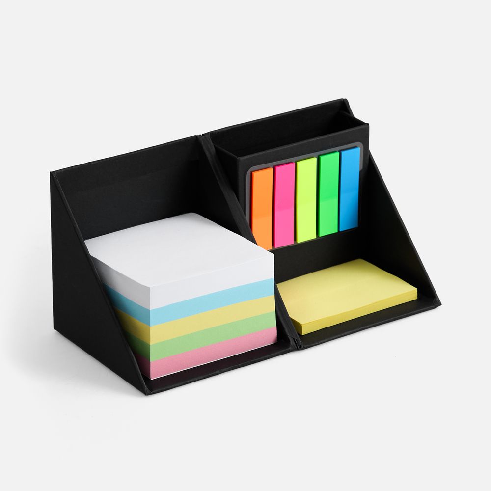 Настольный набор в подставке-кубарике:- Блок бумаги: 500 листов, 5 цветов, плотность 70 г/м2;