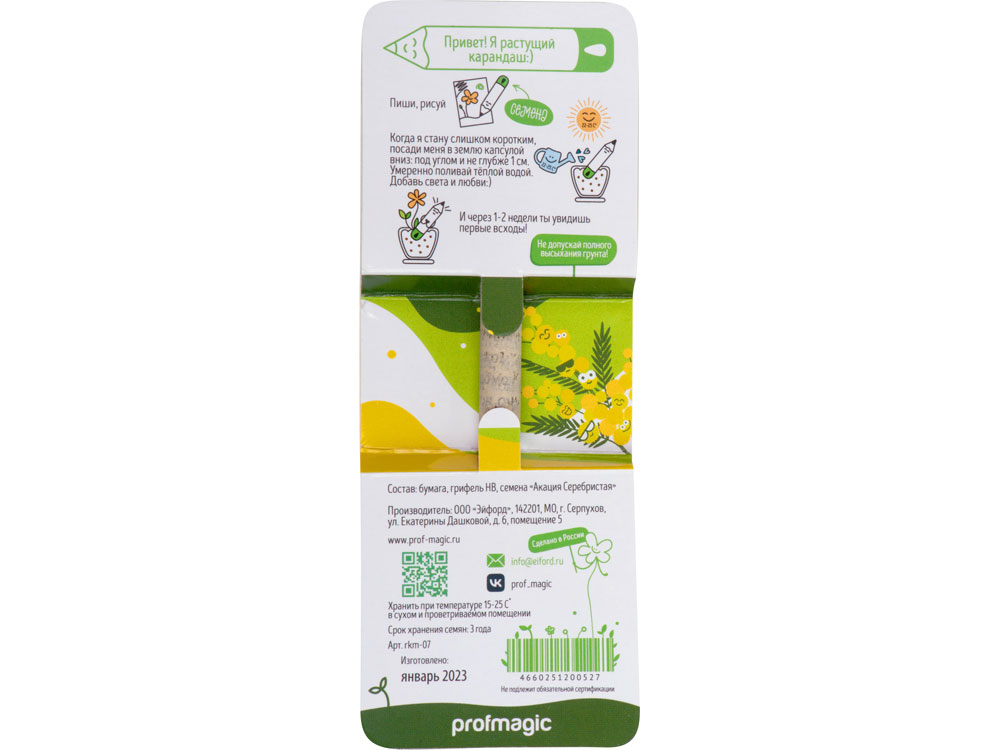 Принцип работы такой же, как и у больших карандашей: пишите карандашом до тех пор, пока не останется 1 см до капсулы. Когда он станет коротким, посадите его под углом, погрузив капсулу в землю не более, чем на 1 см. Поливайте и ухаживайте за ним, и уже через 15-25 дней акация даст первые всходы.