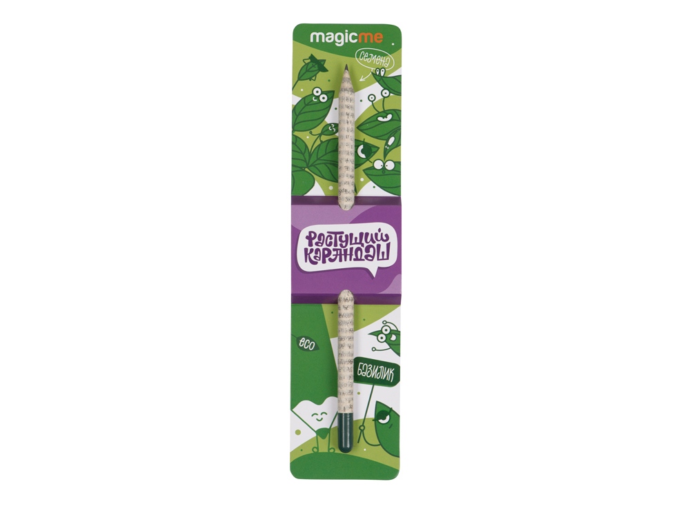 Растущий карандаш сделан из бумаги и на кончике у него желатиновая растворяющаяся капсула с семенами базилика.