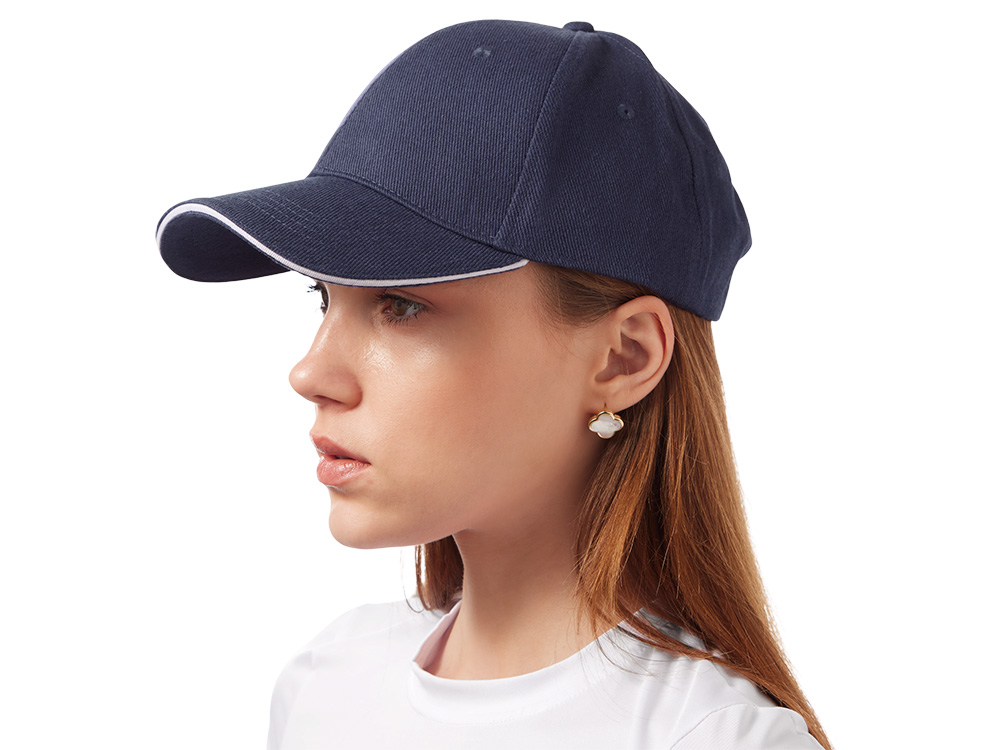 Стильный контрастный кант по козырьку и заднему хлястику добавляет изделию выразительности и делает бейсболку заметным элементом образа.