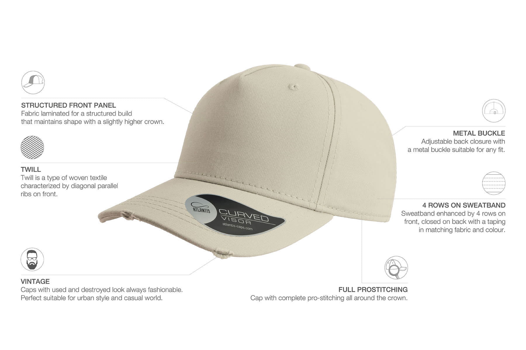 Бейсболка CARGO выполнена в неизменно популярном винтажном стиле. Рваные края изогнутого козырька придают ей шарм и уникальность. CARGO изготовлена из дышащего и прочного хлопка с плетением твил. Конструкция из 5 панелей и регулируемый ремешок обеспечивают удобную посадку на голове. Мягкость волокон обеспечивается стиркой изделия после его изготовления. Площадь фронтальной панели отлично подходит для вышивки и нанесения логотипа.58,5 см - средний размер, с помощью застёжки его можно увеличить или уменьшить до необходимого. -