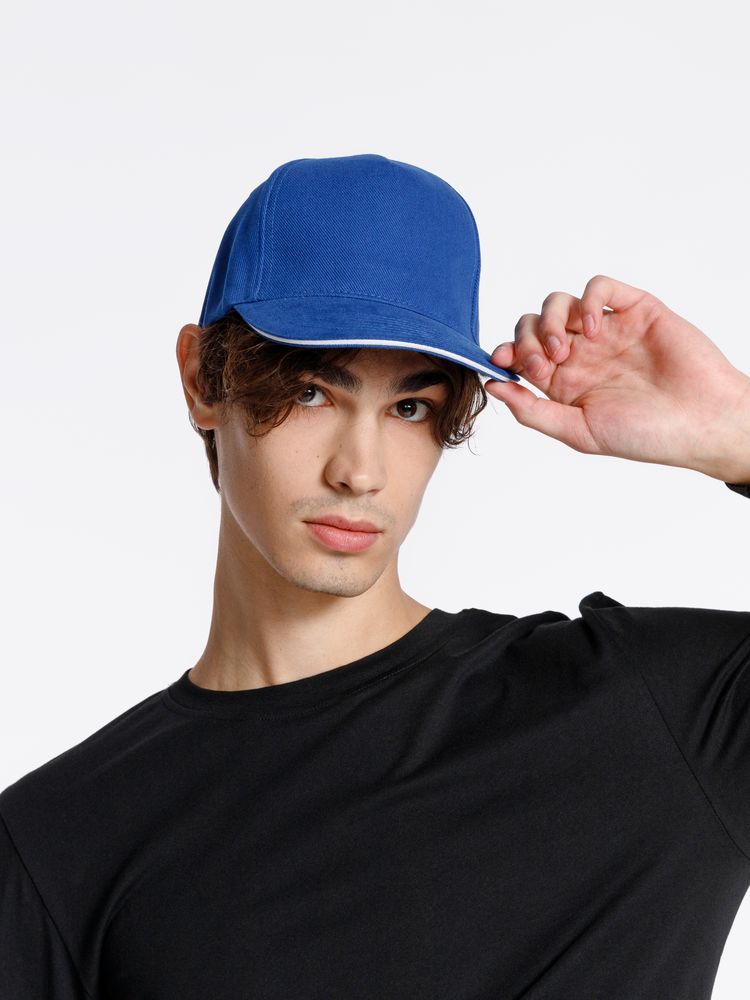 Бейсболка Classic, ярко-синяя с белым кантом