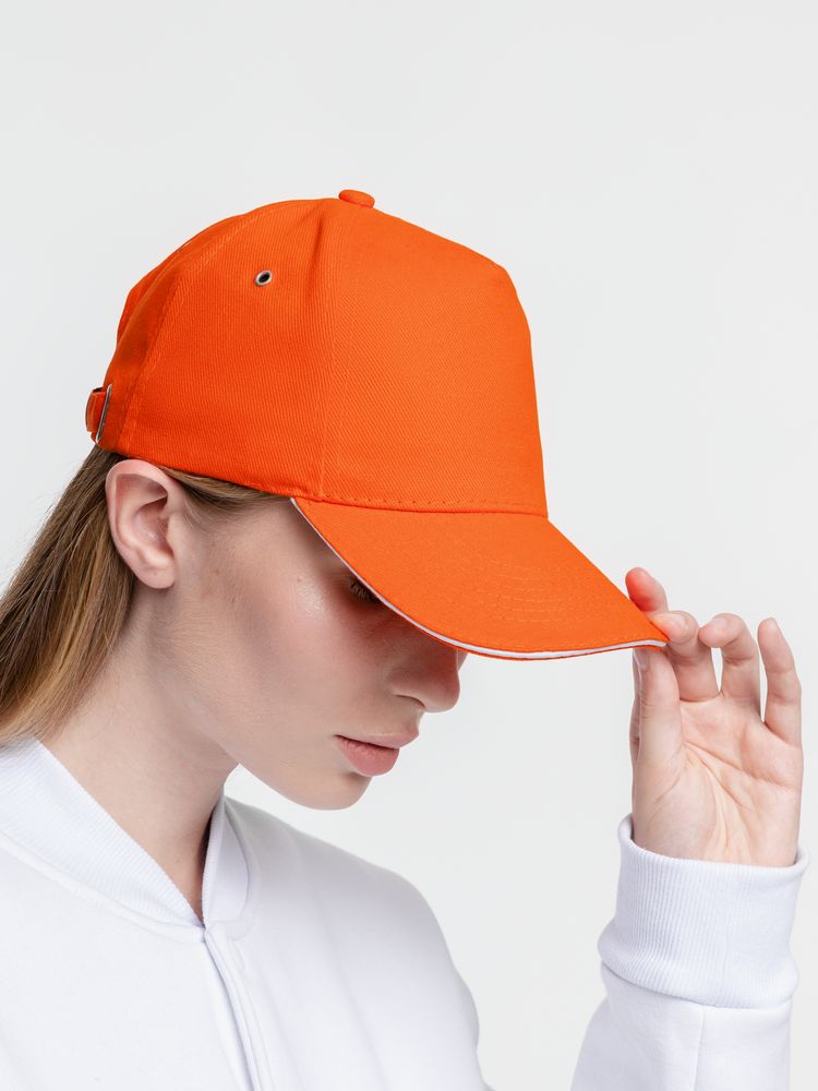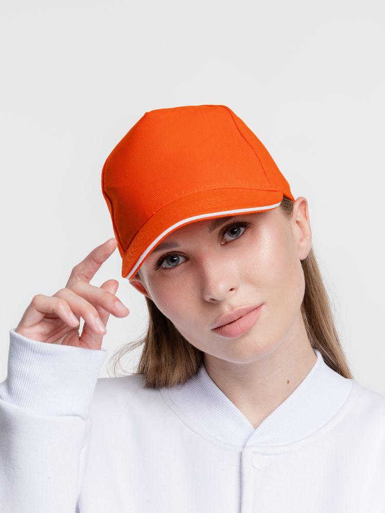 Популярная модель с 5 клиньями без лобового шва выполнена из плотного хлопка.- Козырек-сэндвич с контрастной вставкой