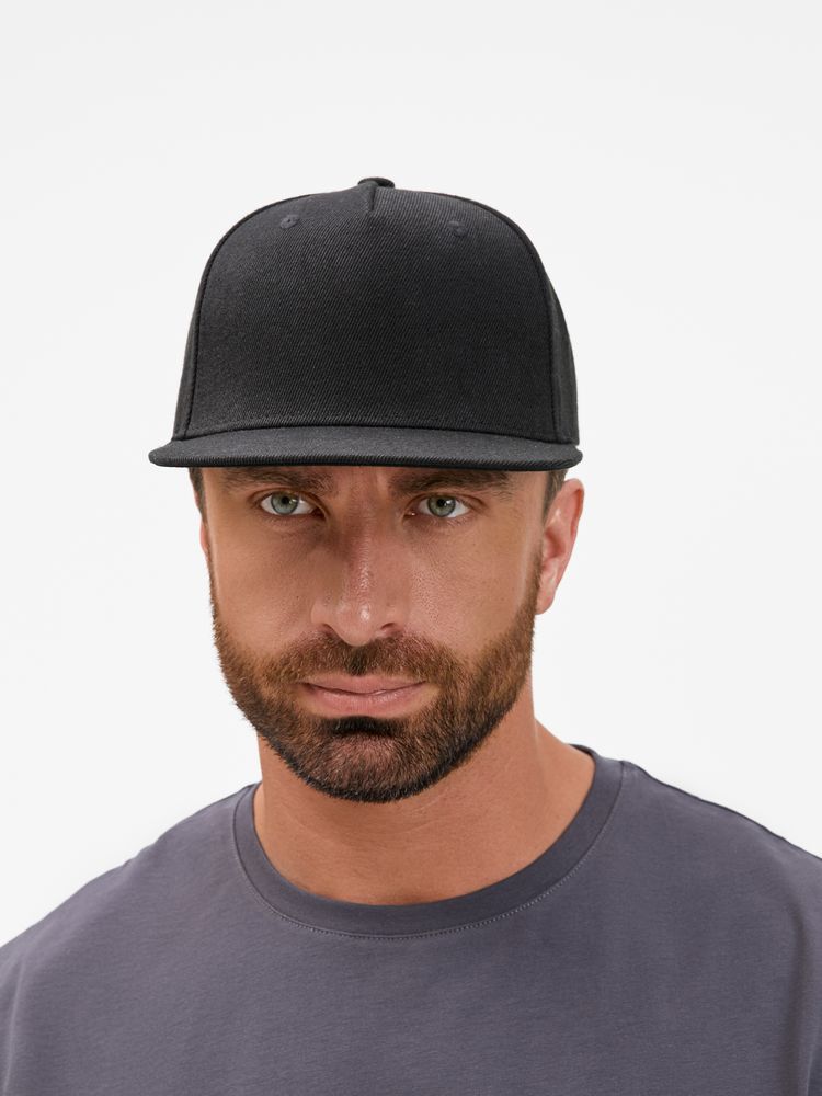 Бейсболка с прямым козырьком из плотного фактурного полиэстера отлично держит форму и не выцветает.- Модель с 5 клиньями без шва на лбу