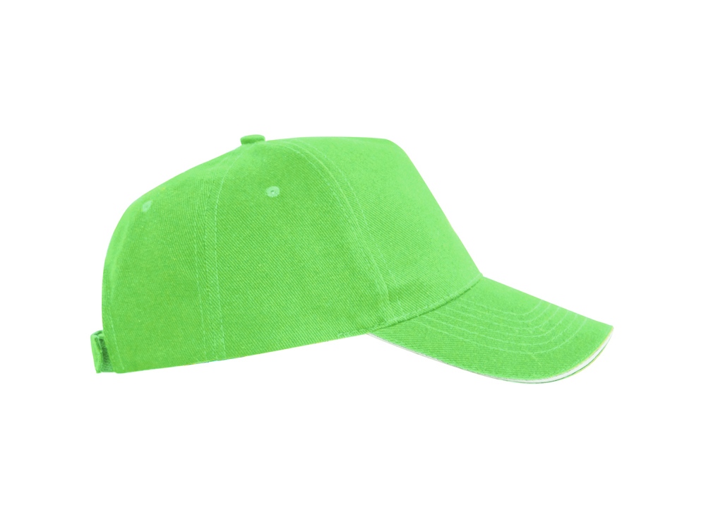 Бейсболка из 5 панелей с контрастным сэндвичем. Четыре вышитых вентиляционных люверса. Застежка на липучку. -
