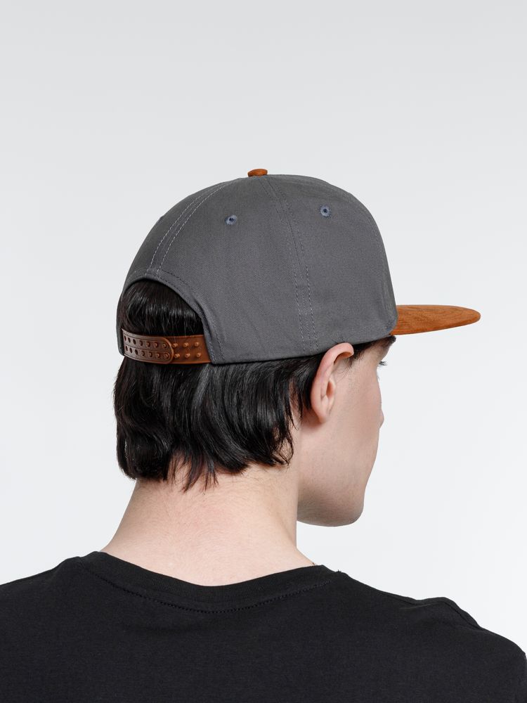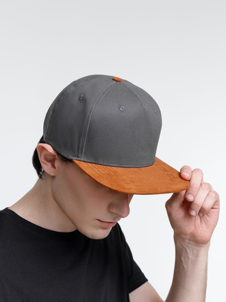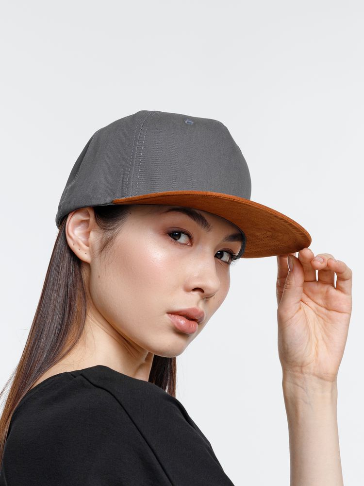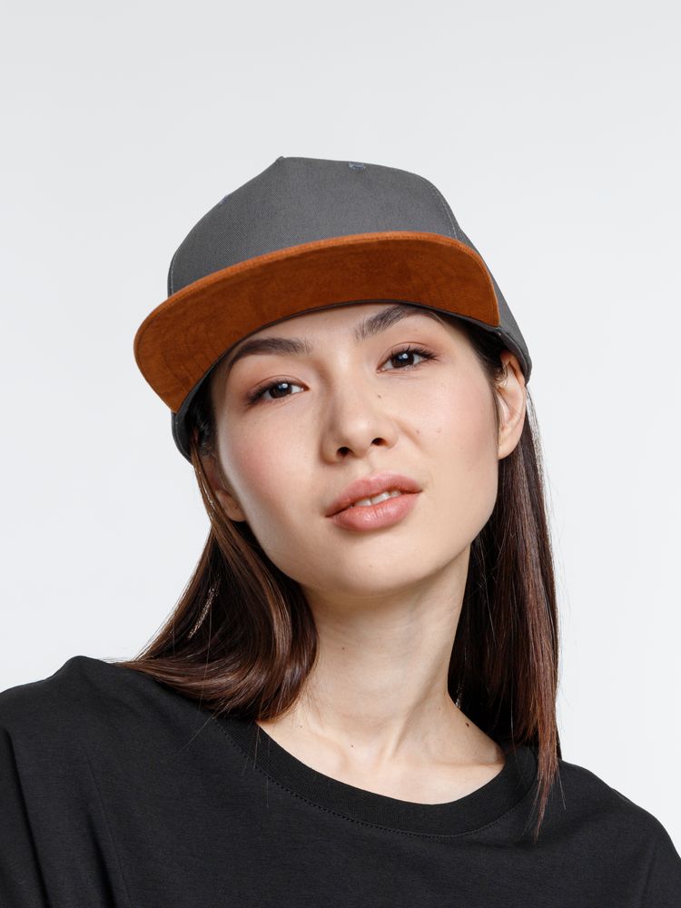Удобная модель с 5 клиньями без шва на лбу и с обшивными люверсами.- Плотный контрастный прямой козырек из мягкой, приятной на ощупь ткани с велюровым эффектом