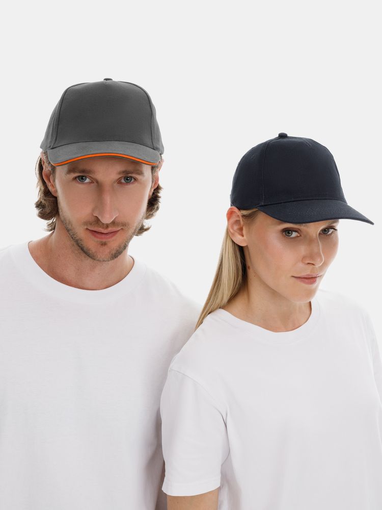 Модель бейсболки с 5-ю клиньями без лобового шва из плотного чесаного хлопка.- Обшивные люверсы