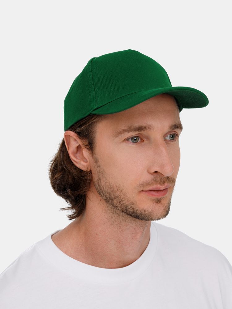 Модель бейсболки с 5-ю клиньями без лобового шва из плотного чесаного хлопка.- Обшивные люверсы
