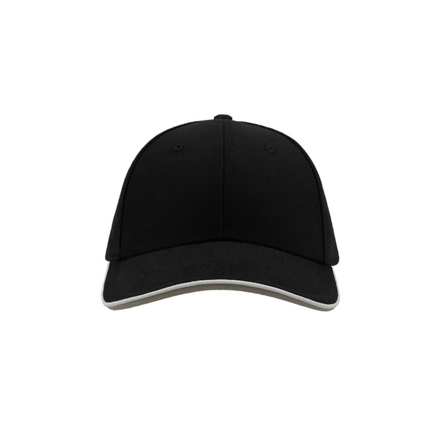Плотная бейсболка PILOT PIPING SANDWICH с двухцветным козырьком, отделанным контрастным кантом. - 6 клиньев,- лобовой шов,- 6 вышивных люверсов для лучшей вентиляции,- изогнутый козырек,- металлическая застежка, - нижняя сторона козырька контрастного цвета.Цвет, близкий к Pantone Black 6C58,5 см - средний размер, с помощью застёжки его можно увеличить или уменьшить до необходимого. -