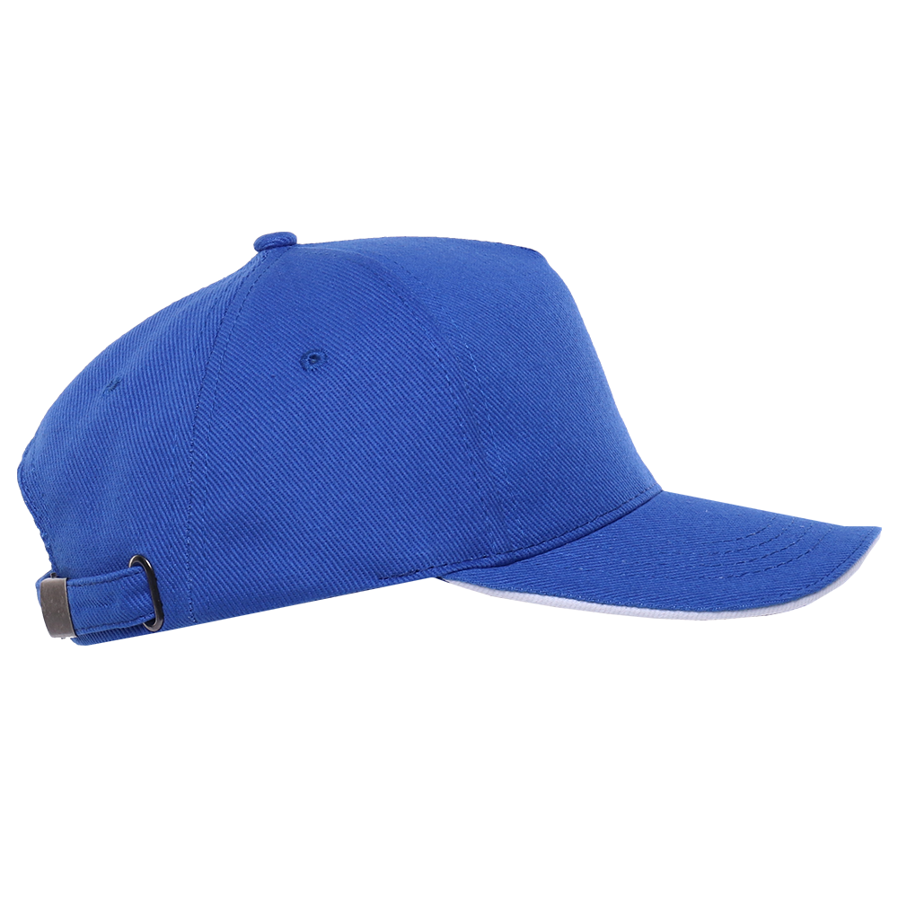 Пятиклиновый пошив, отсутствие лобового шва и изогнутый жесткий козырек «сэндвич» с контрастным кантом. Посадка регулируется ремешком с металлической застежкой.