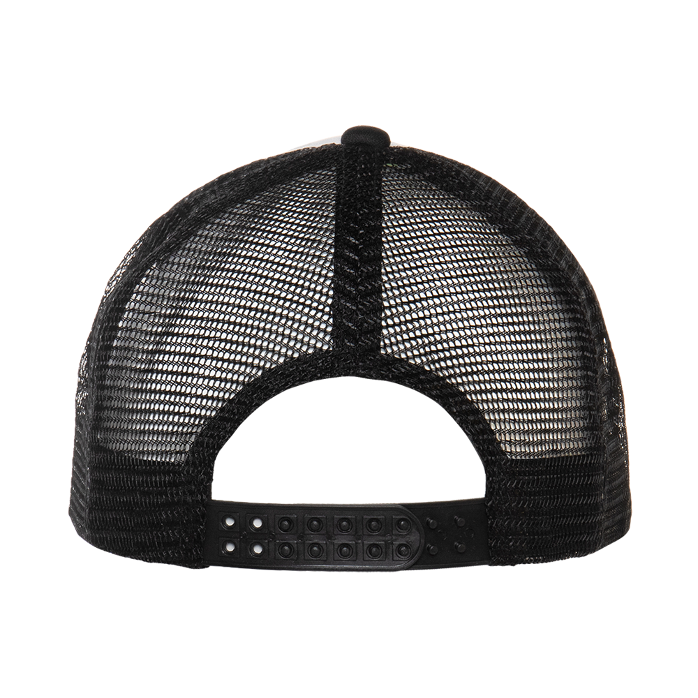 Бейсболка с сеткой без лобового шва с жёстким изогнутым козырьком, плотность прилегания регулирует надежная пластиковая застежка. Передний клин и козырек усилены поролоном, благодаря чему модель имеет узнаваемый характерный силуэт.