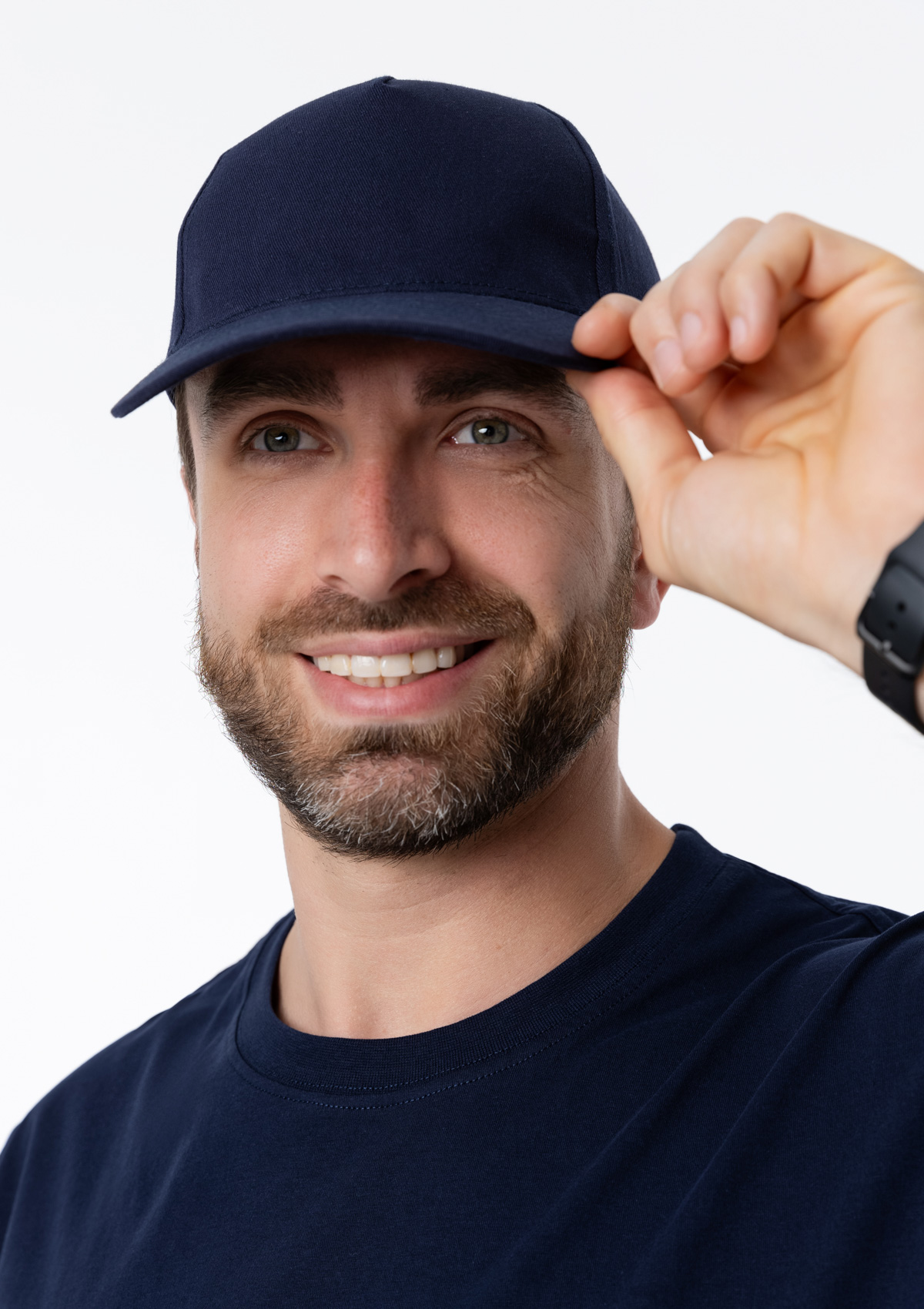 Для изготовления бейсболки использовали плотный хлопковый твил, благодаря которому изделие защитит от непогоды и надолго сохранит форму.