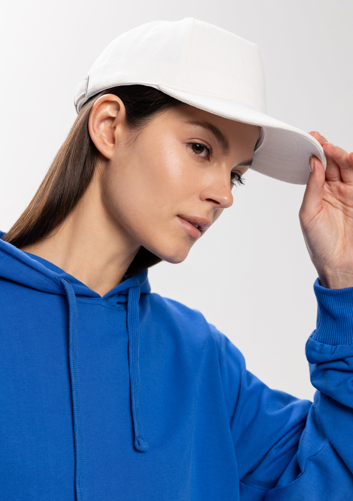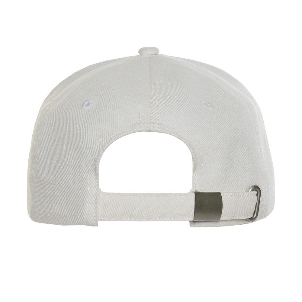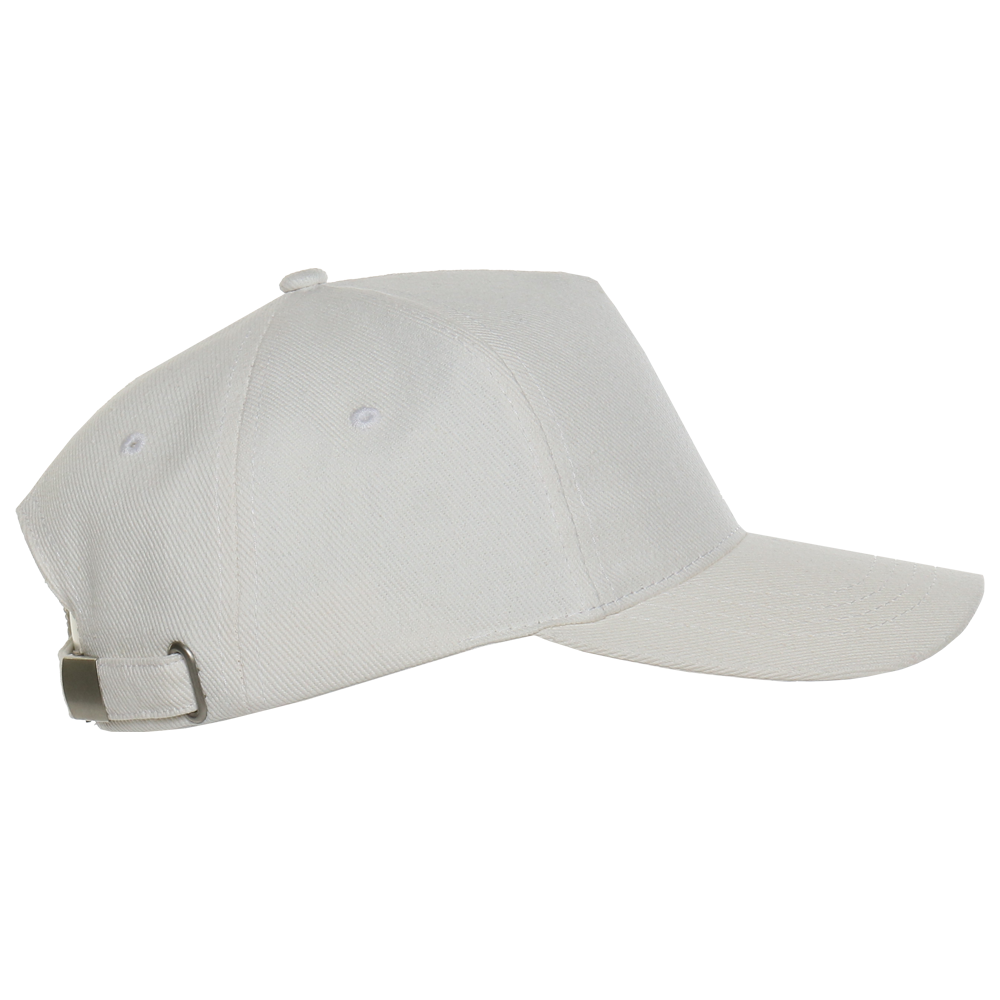 Бейсболка-пятиклинка без лобового шва с изогнутым жестким козырьком и регулируемой металлической застежкой.