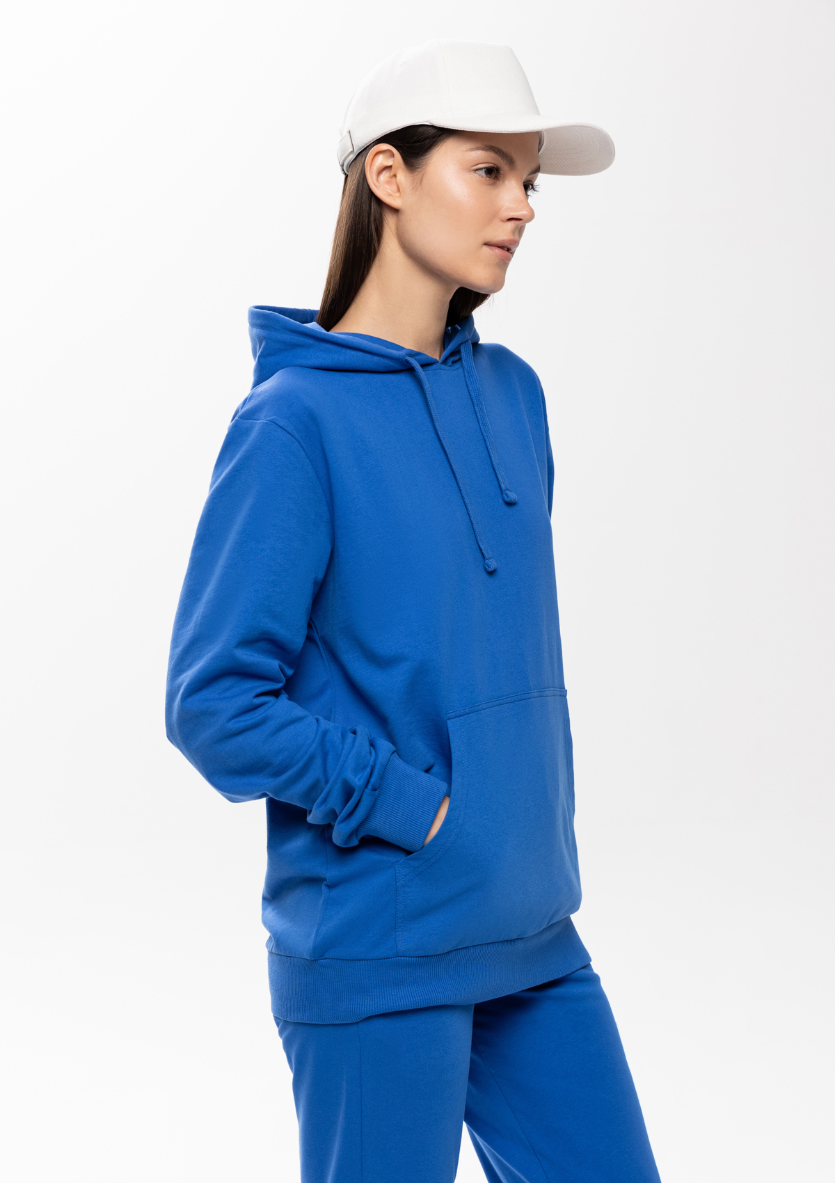 Модель выполнена из плотного, но мягкого хлопкового твила. Фактурный материал легко пропускает воздух, не мнется и хорошо держит форму.