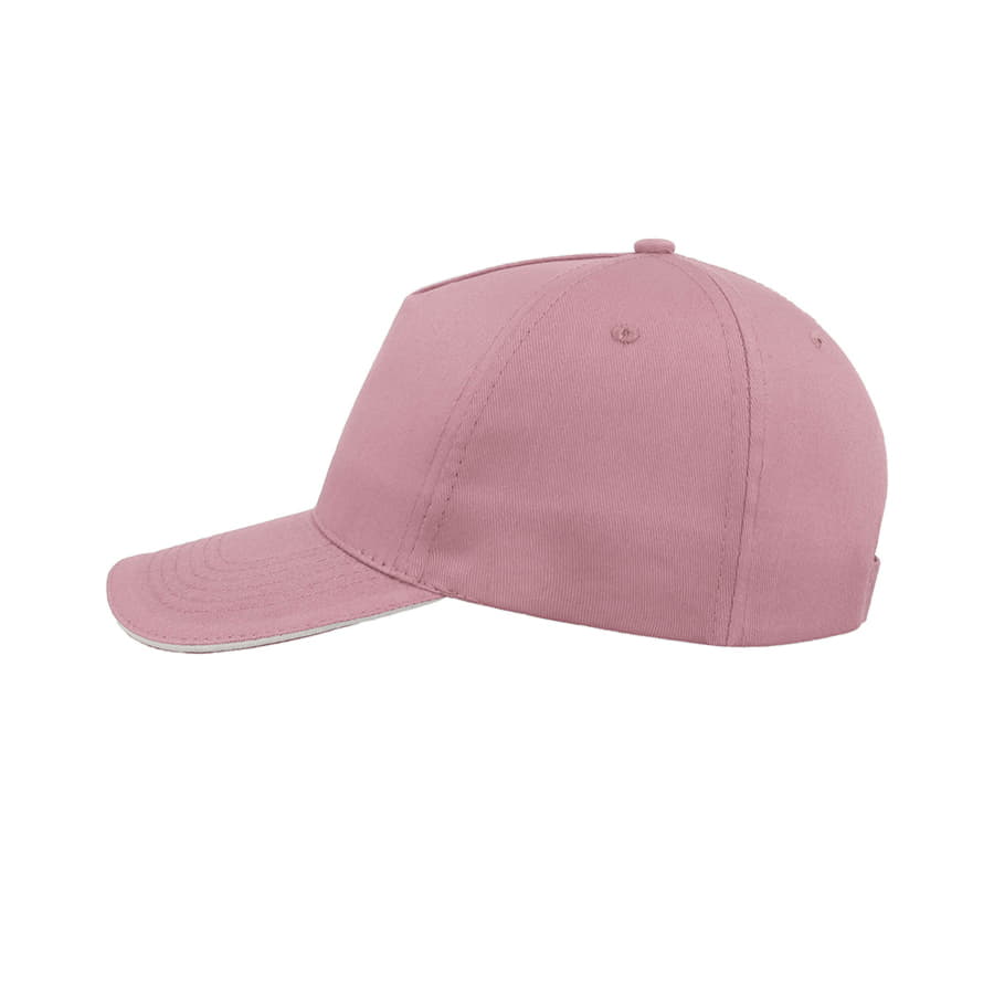 Универсальная легкая бейсболка START FIVE SANDWICH с контрастным кантом на козырьке. Бейсболка имеет универсальный размер и хорошо подойдет для любого промомероприятия. - 5 клиньев, - без лобового шва, - 4 вышитых люверса для лучшей вентиляции, - застёжка на липучке, - изогнутый козырек «сэндвич» с шестью прошитыми рядами. Цвет близкий к Pantone 707 C 58,5 см - средний размер, с помощью застёжки его можно увеличить или уменьшить до необходимого. -
