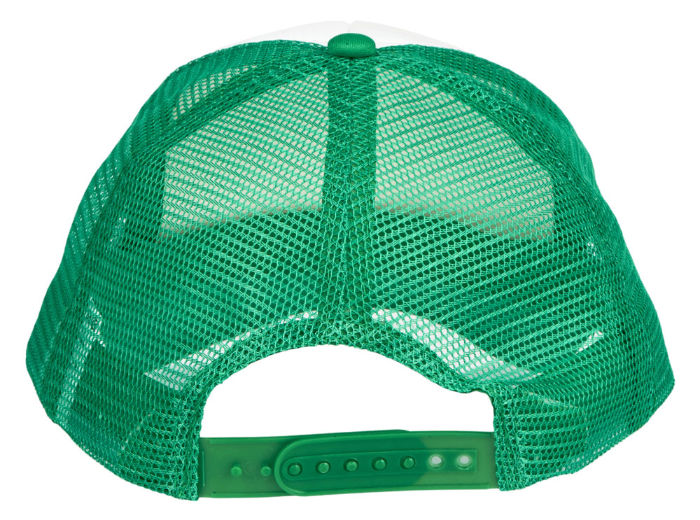 Кепка из 5 панелей Trucker. Оригинальная кепка на окружность головы 58 см с передней поролоновой частью, пластиковой сеткой сзади и пластиковой застежкой. Эта кепка полностью соответствует требованиям к соединениям AZO, формальдегиду и ПХФ. Полиэстер и поролон. -