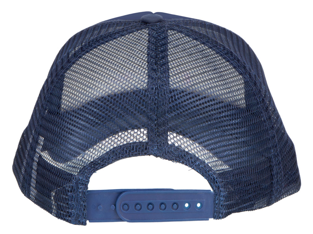 Кепка из 5 панелей Trucker. Оригинальная кепка на окружность головы 58 см с передней поролоновой частью, пластиковой сеткой сзади и пластиковой застежкой. Эта кепка полностью соответствует требованиям к соединениям AZO, формальдегиду и ПХФ. Полиэстер и поролон. -
