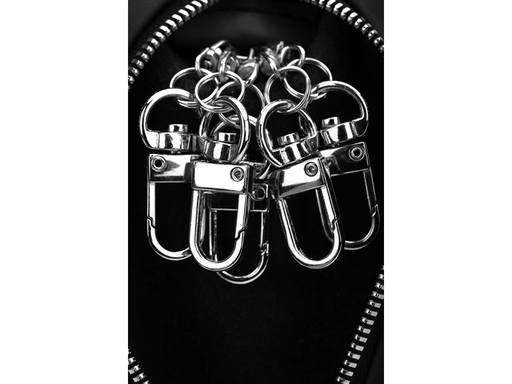 Простая, но в тоже время стильная ключница. Небольшие кольца для ключей, делают эту ключницу максимально легкой. 5 колец для ключей. Металлическая молния придает строгости внешнему виду! -