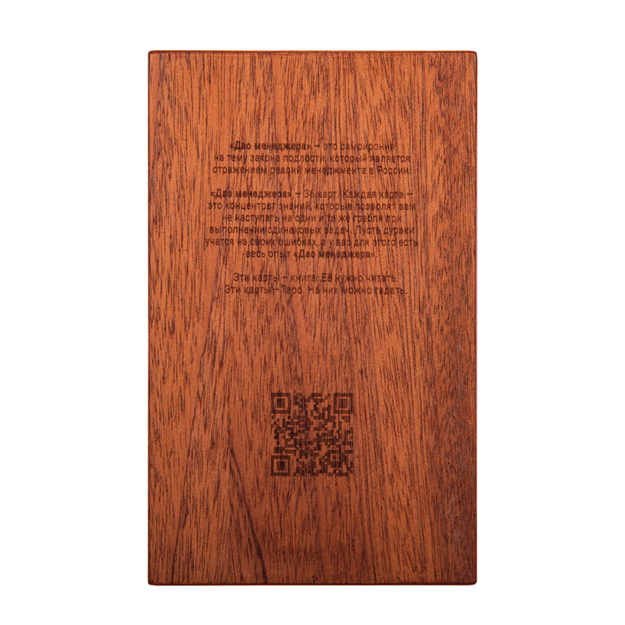 Сборник карт-афоризмов о менеджменте в России. «Дао менеджера» - уникальная книга для бизнеса— это набор иллюстрированных афоризмов о непростых отношениях между создателем и модератором. Иногда эти отношения парадоксальны, иногда курьезны, но всегда присутствуют в нашей жизни: как на работе, так и в быту. Весь концентрат мудрости в 36 картах. Менеджерское Таро, путеводитель в мире тайм-менеджмента, кормчая книга управленца — это «Дао менеджера». Полная расшифровка аффирмаций доступна на сайте. Переход через QR код. http: даоменеджера.рф Деревяный футляр для карт. -