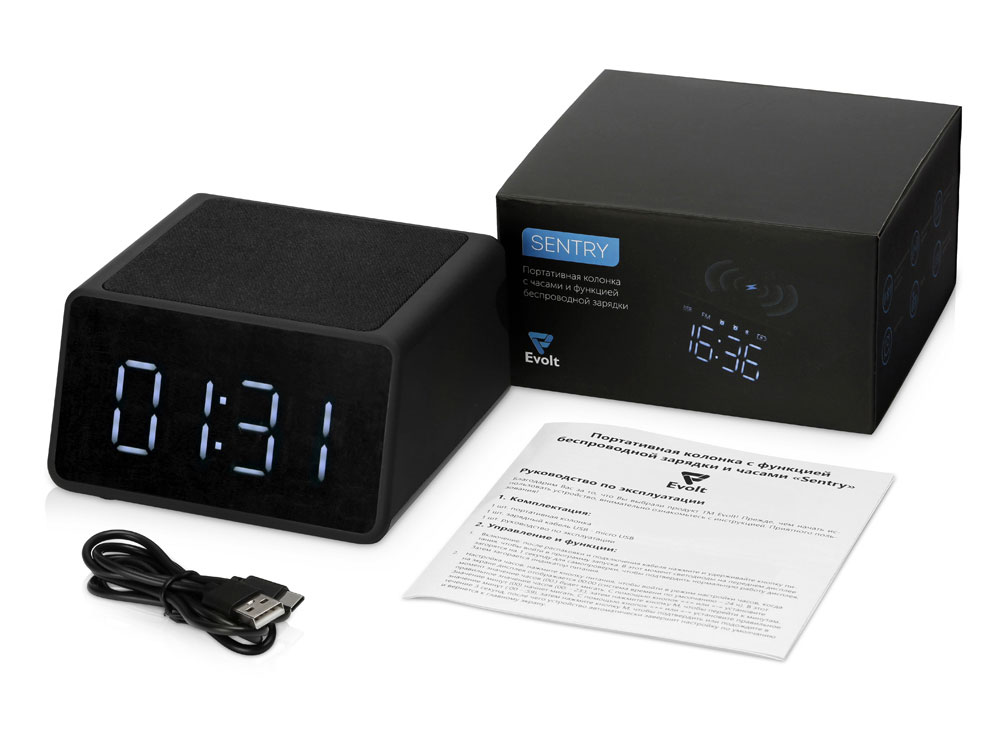 Беспроводная колонка с часами и функцией беспроводной зарядки Sentry