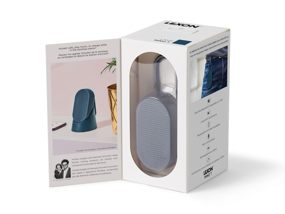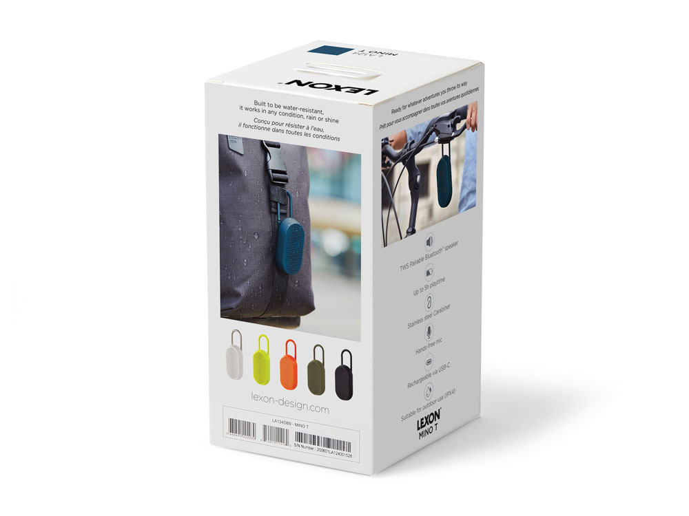 Mino T — это универсальная Bluetooth-колонка, созданная для путешествий. Карабин позволяет легко прикрепить её к сумке или велосипеду. Благодаря элегантному дизайну она гармонично впишется в интерьер, став современным элементом. Оснащённая пассивной басовой системой, Mino T обеспечивает качественное прослушивание, гарантируя сбалансированный и насыщенный звук в дороге. Не беспокойтесь о дожде: сверхпрочное покрытие делает её водонепроницаемой. Наслаждайтесь до 5 часов автономной работы в любых приключениях. Отвечайте на звонки, слушайте музыку или заряжайте колонку через кабель USB-C, установив её на док-станцию.