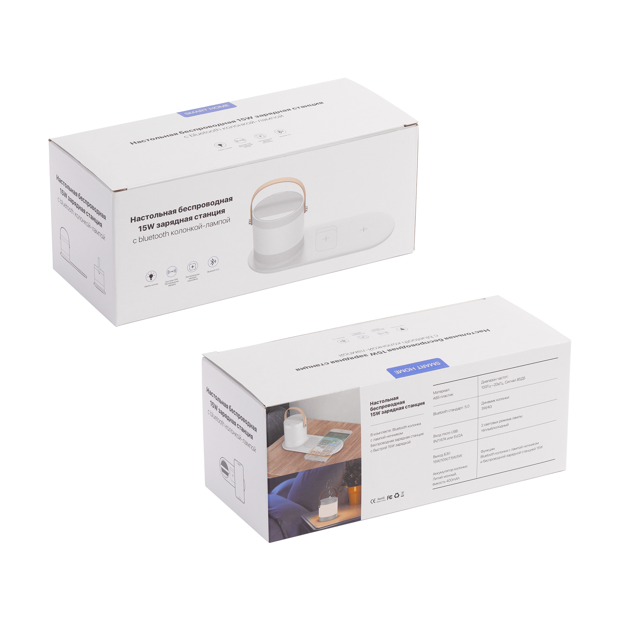 Настольная беспроводная (15W) зарядная станция "Smart Home" с bluetooth колонкой-лампой