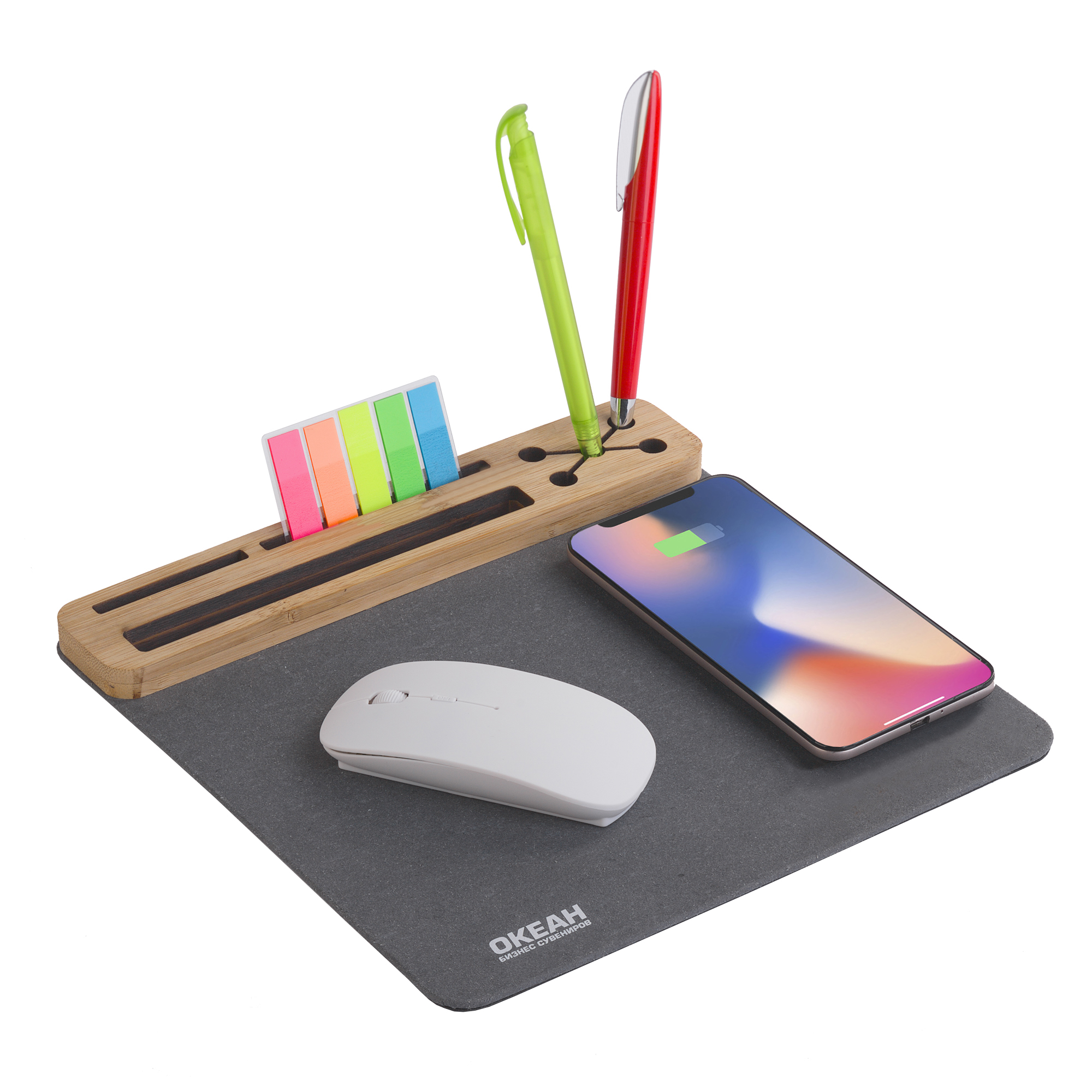 Настольная подставка с беспроводным зарядным устройством, переработанная кожа/бамбук