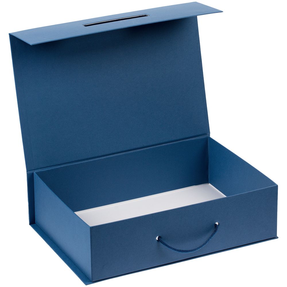 Коробка выполнена из переплетного картона, кашированного гладкой дизайнерской бумагой Magic, с крышкой на магните.