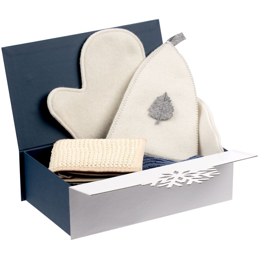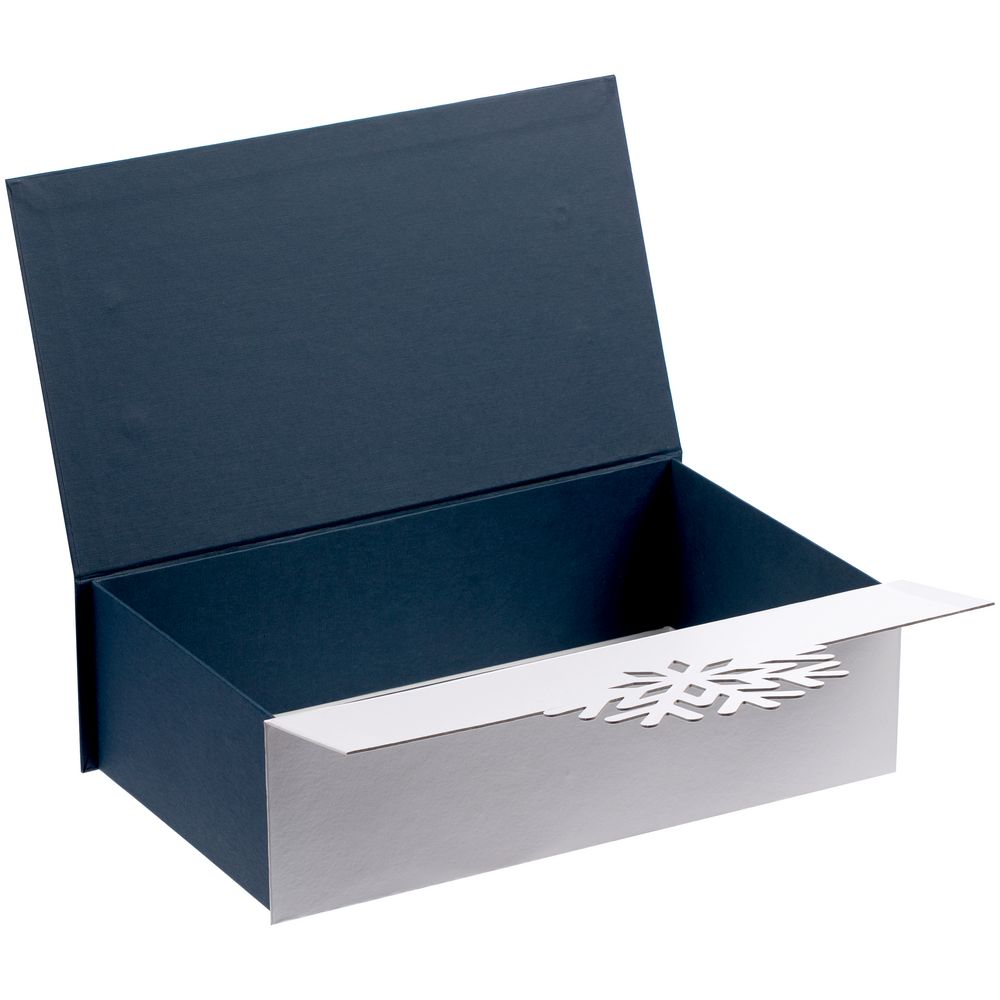 Коробка из переплётного картона, кашированного дизайнерской бумагой Classy Covers и Majestic. Крышка в форме снежинки на магнитах. -