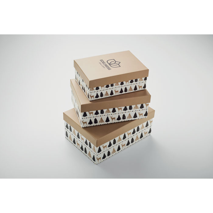 Набор из 3 рождественских подарочных картонных коробок. 128 гр. Маленький, средний и большой размер. Маленькая 17,5x12,5x6,5 см, средняя 20x14x8 см и большая: 22,5x16x9,5 см. -